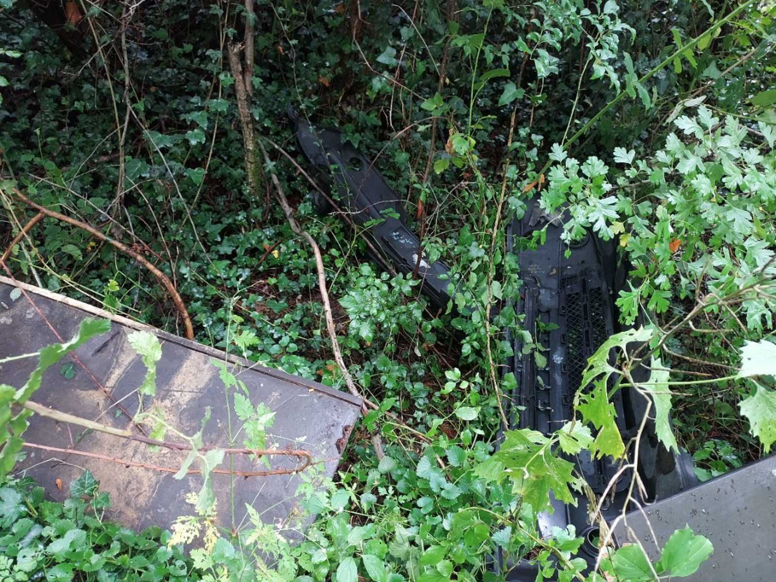 Dépôt de plusieurs planches de meubles et de pièces de voitures.