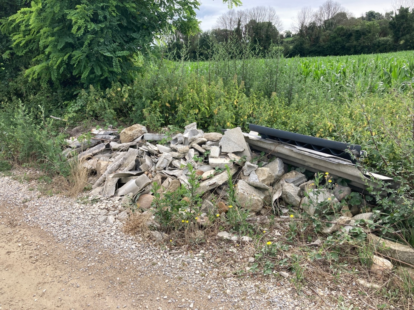 Dépôt de gravats avec des plaques contenants de l'amiante.