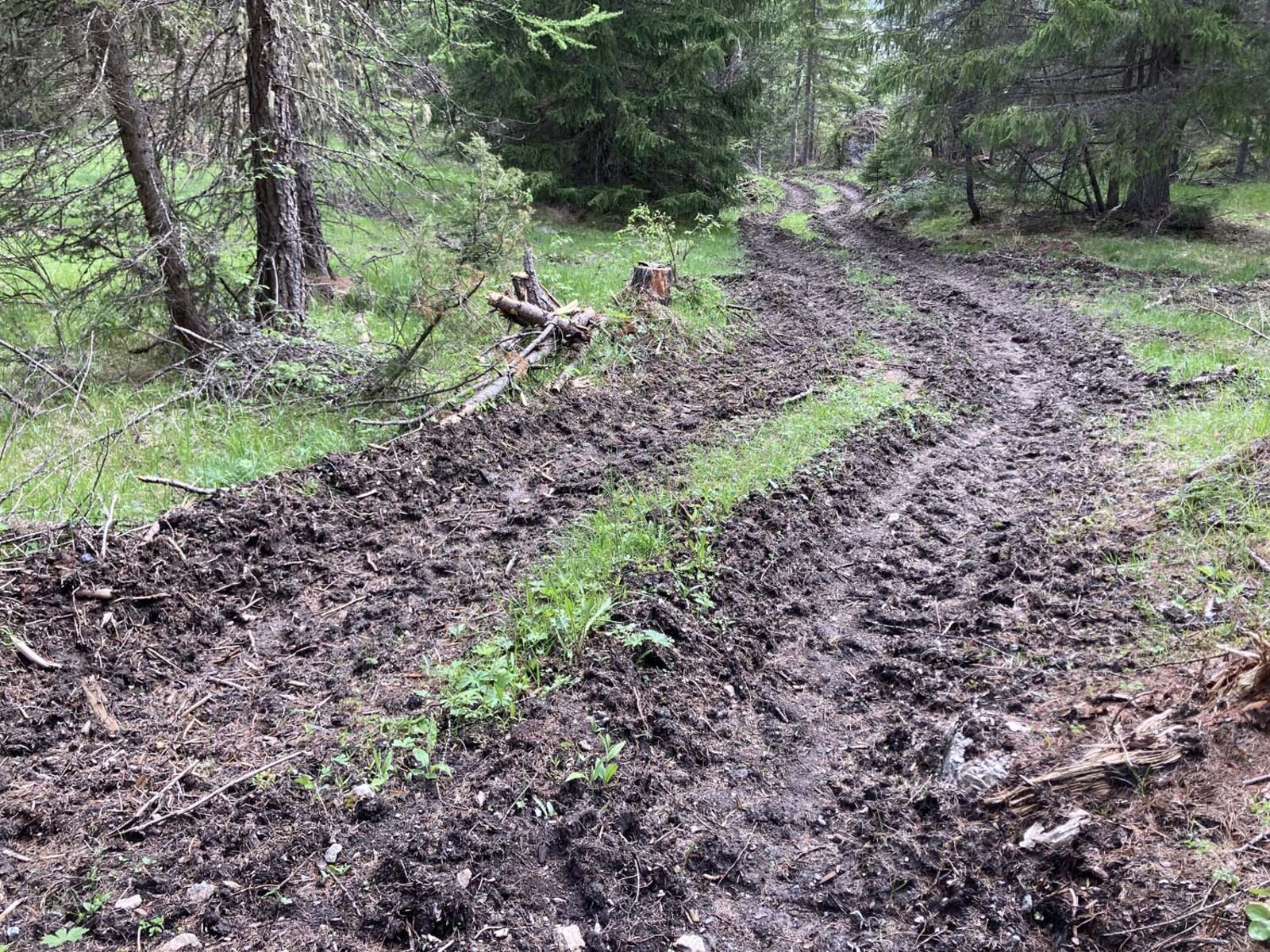 Coupe de bois effectuée à l'aide d'une abatteuse qui a dégradé le milieu