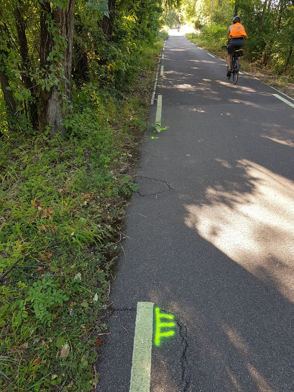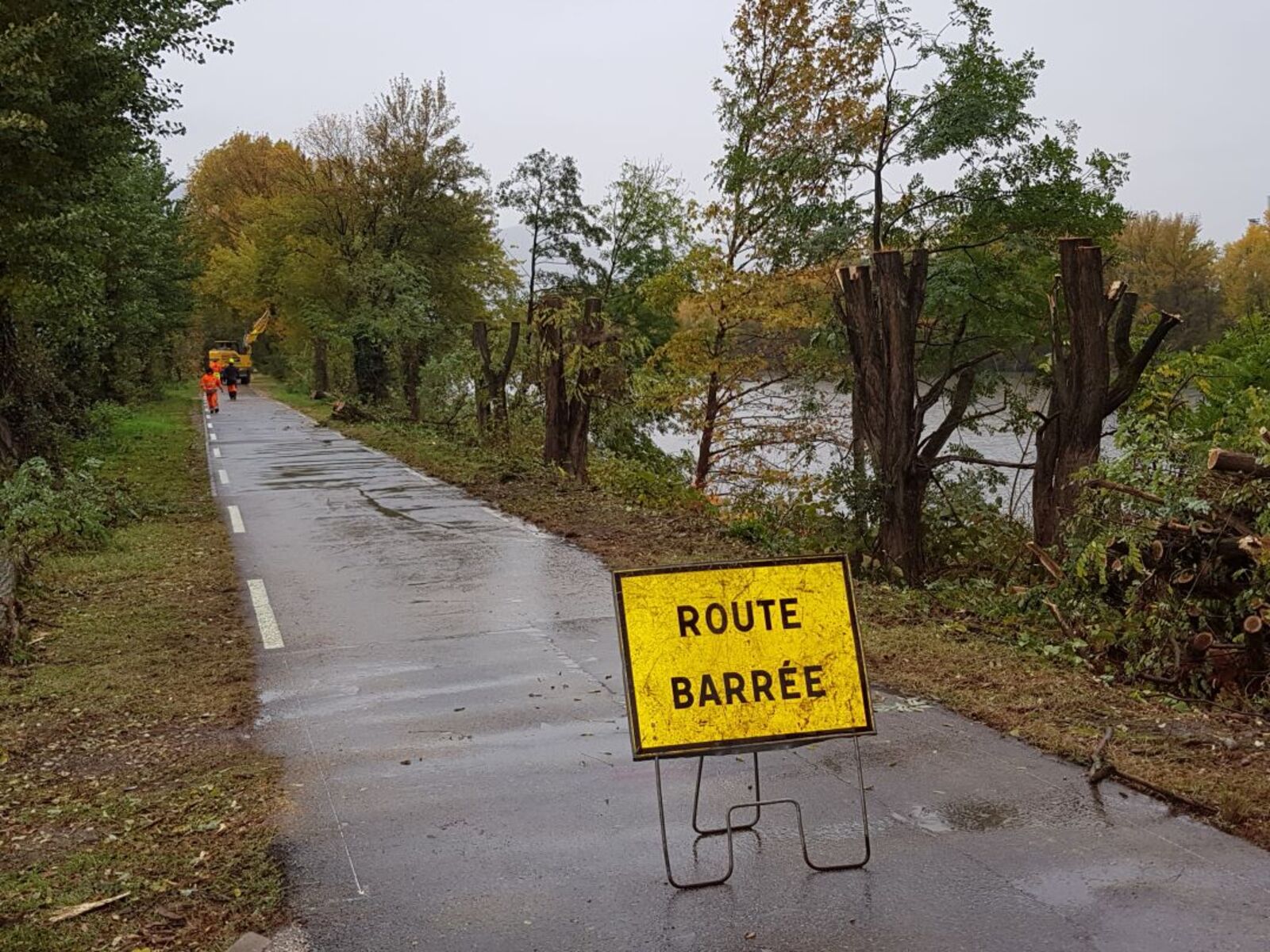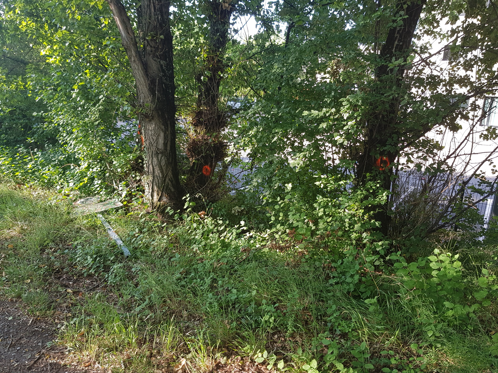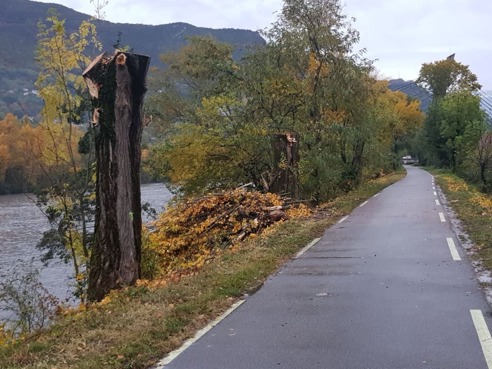 Des marques soit d'abattage soit de décapitation ont été apposé à une grande partie des arbres sur la digue et sur les berges de l'Isère. La digue est géré par EDF. La décapitation systématique des arbres risque de les déstabiliser à moyen terme et la destruction favorise encore plus les plantes invasives déjà présents sur le site.