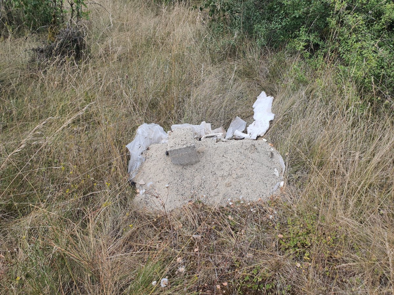 Dépôt de déchets (gravas et plastiques) en pleine nature.