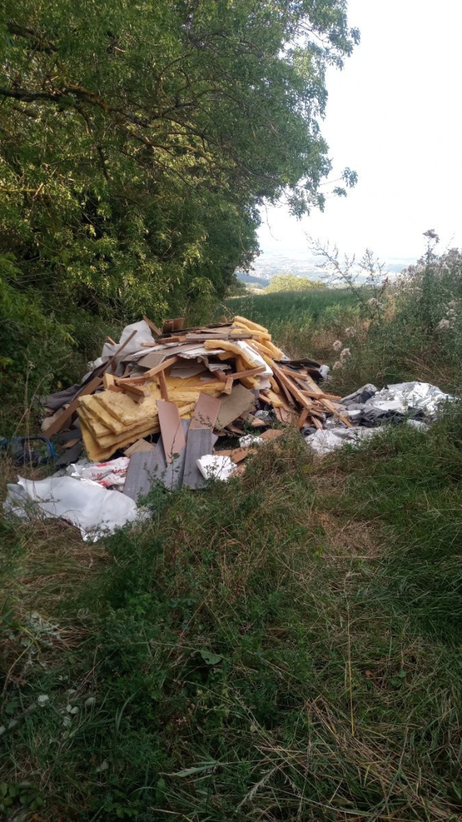 Un dépôt dé déchets nous a été signalé sur la commune de Poleymieux-au-Mont-d'Or, composé de déchets du bâtiment (isolants plaques de plâtre etc.)