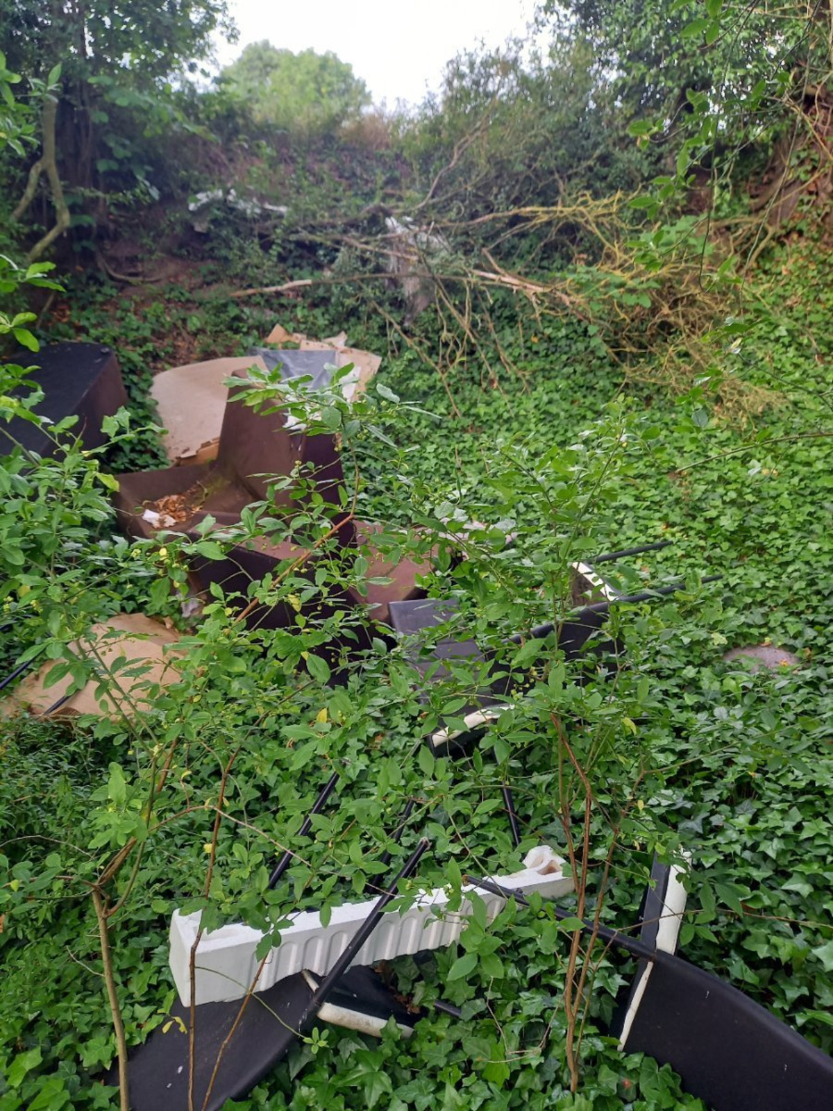 Dépôt de déchets d'ameublement (chaises, canapé) et d'emballage carton, polystyrène