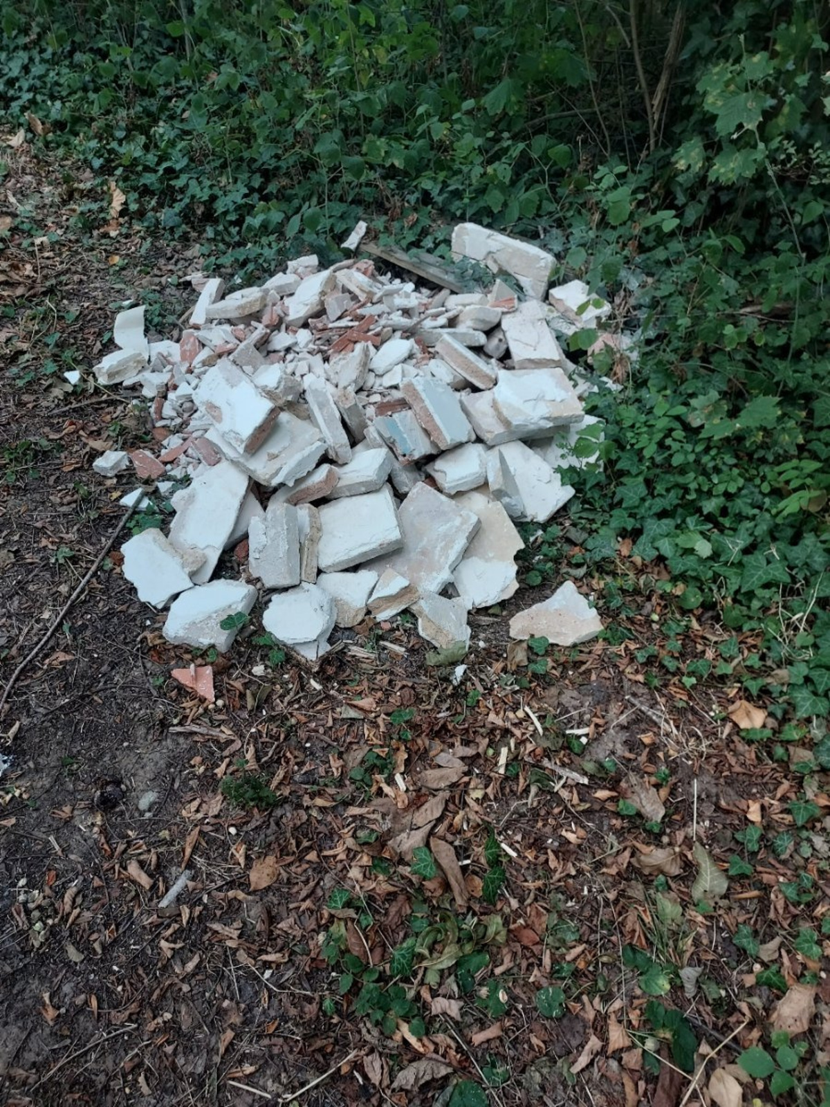 Dépôt de deux tas de carreaux de plâtre.