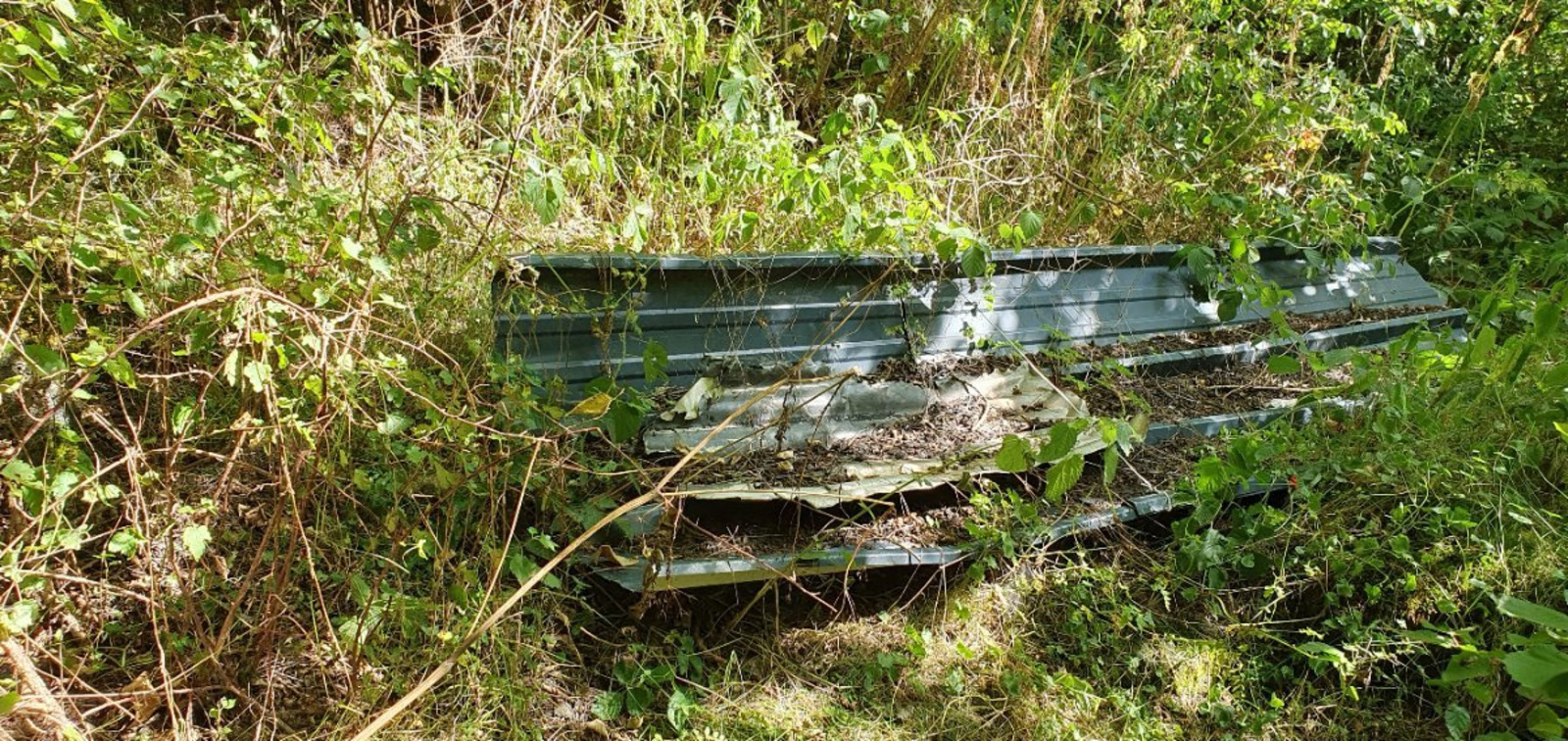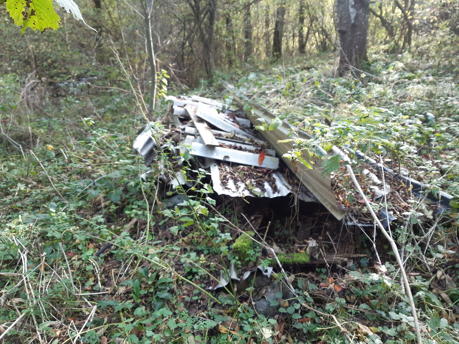 Dépôt sauvage de plaques amiantées le long de la cascade de la Veyre situés à Veyréras.