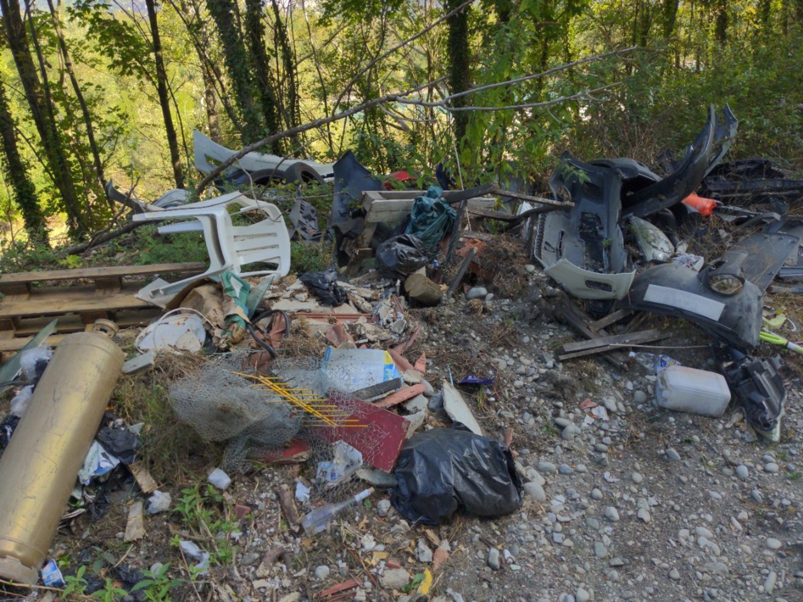 Décharge sauvage entre la RD1532 et le cours d'eau de l'Isère, à proximité du bec de l'échaillon (bouteilles de gaz, ferrailles, bois traité, pneus, pare-chocs de voiture, verre, etc)