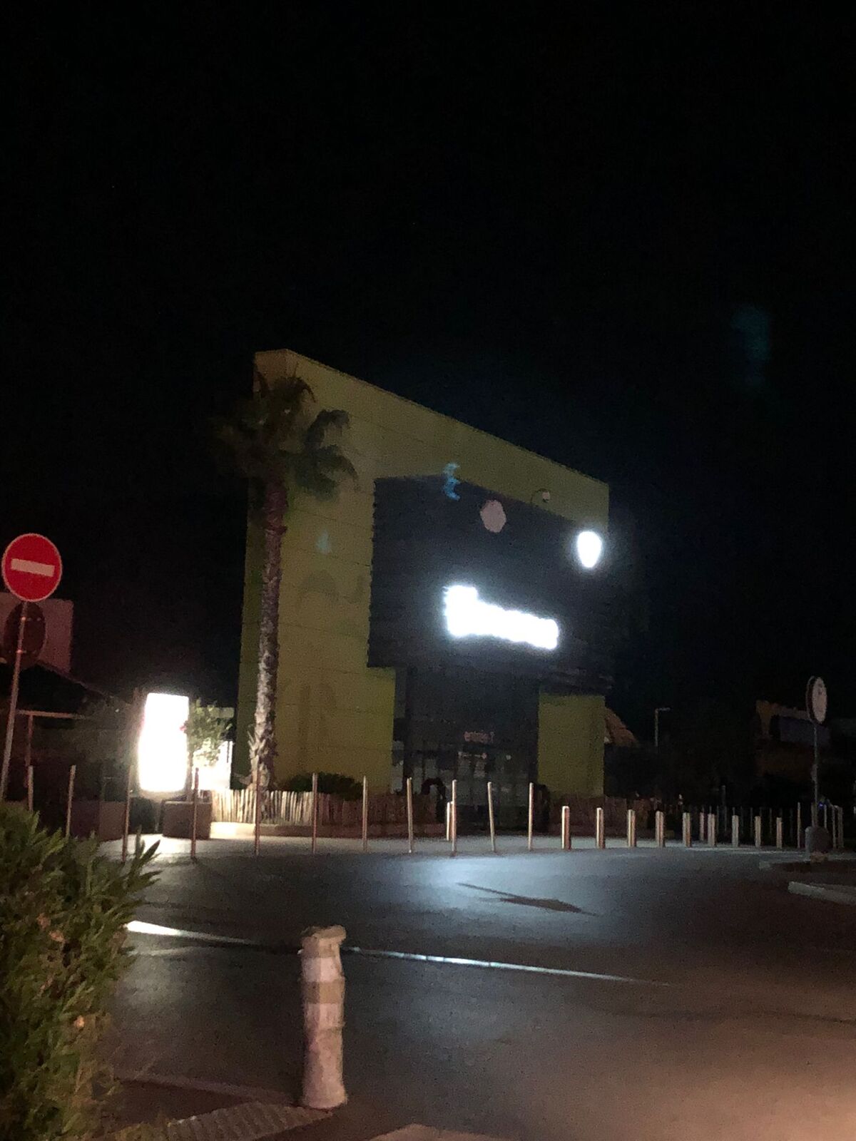Enseigne encore éclairée à 23h23.