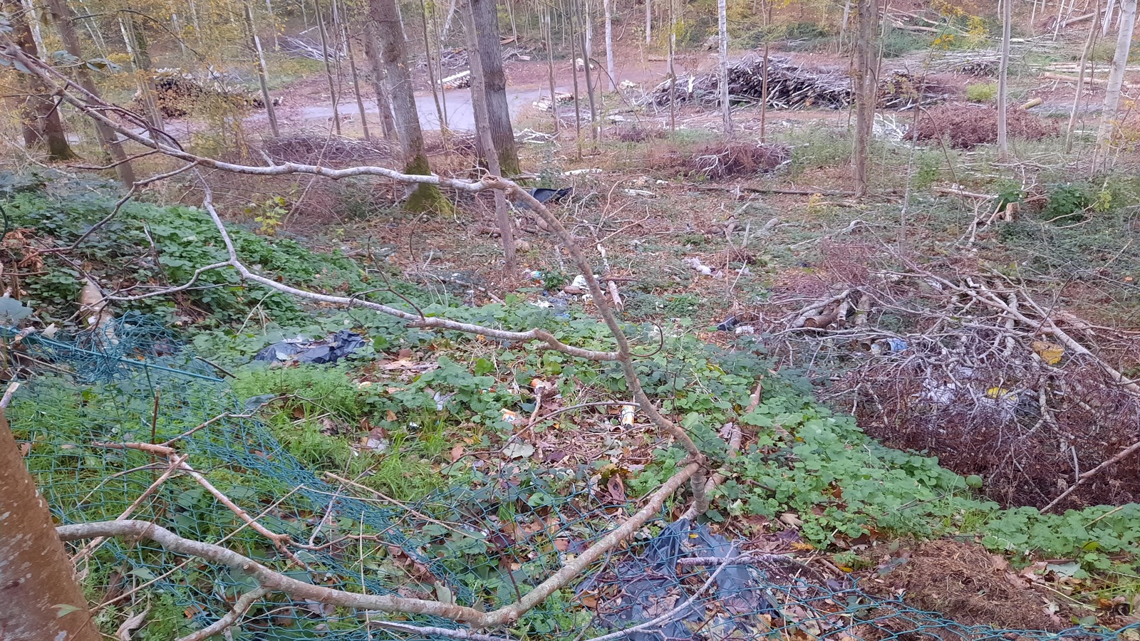 Nombreux déchets de toute nature déposés dans le ravin bordant l'aire de stationnement de la D181.