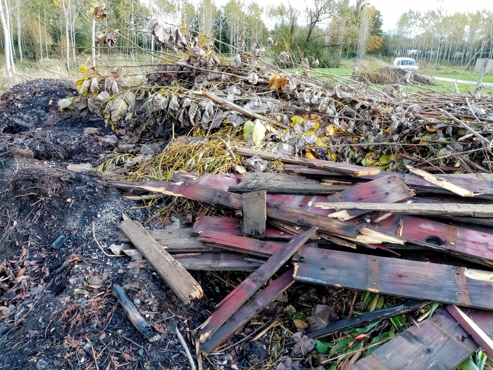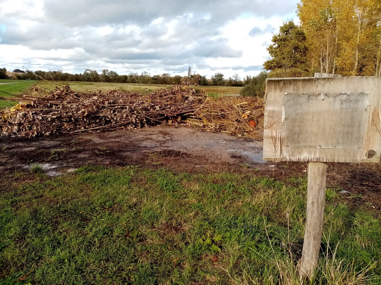 Dépôt et brûlage de déchets divers, branchages, paille, planches de bois peintes, pommes, entre 6 et 10 m3.