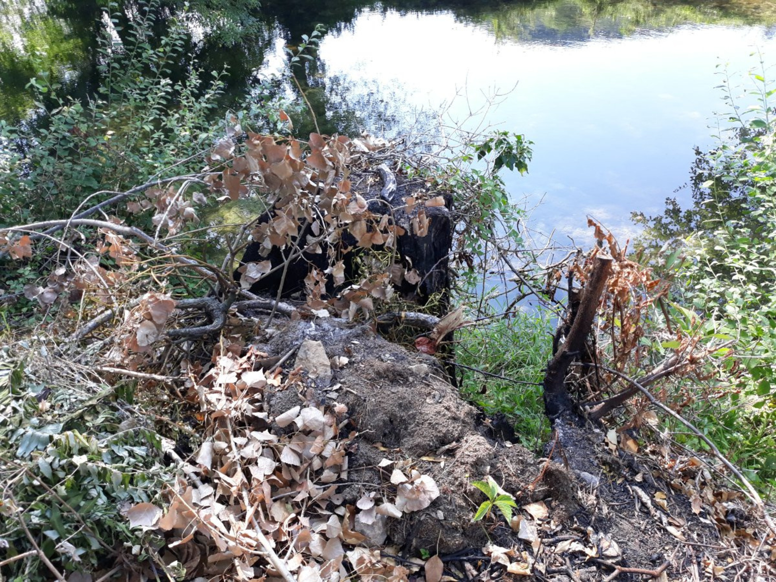 Sur une distance de 1 km sur les berges de la Cuisance, cinq tas de déchets verts dont deux avec déchets plastiques et deux avec déchets alimentaires .