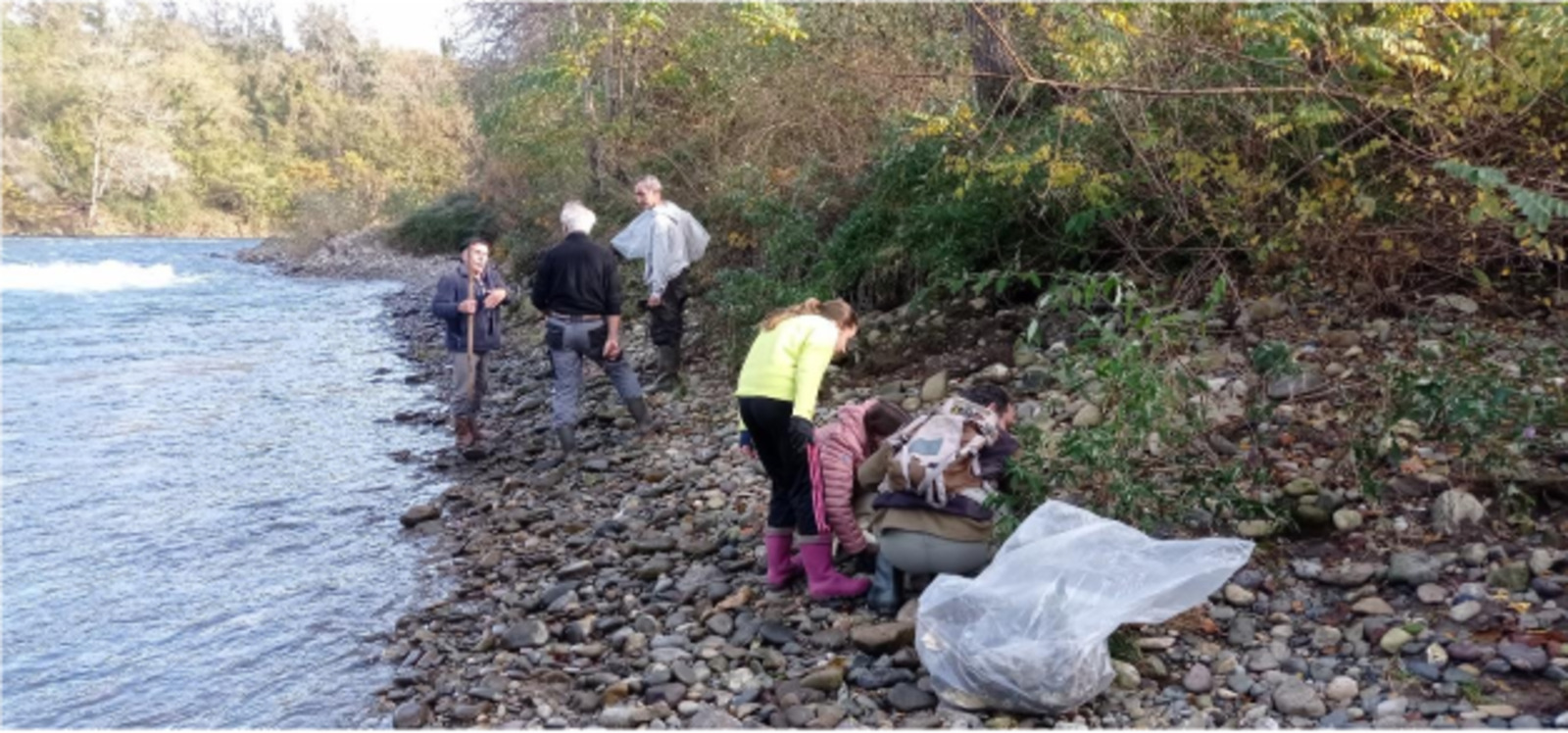 7 citoyens et citoyennes dont 2 enfants ont participé à un chantier de collecte de déchets sur le Gave d'Oloron sur la commune de Barraute-Camu (64), le 18 novembre 2023, organisé par l'association Tervid'Hom. Cette collecte a été organisée dans le cadre du Festival Zéro Déchet Zéro Gaspi organisé par BIL TA GARBI.