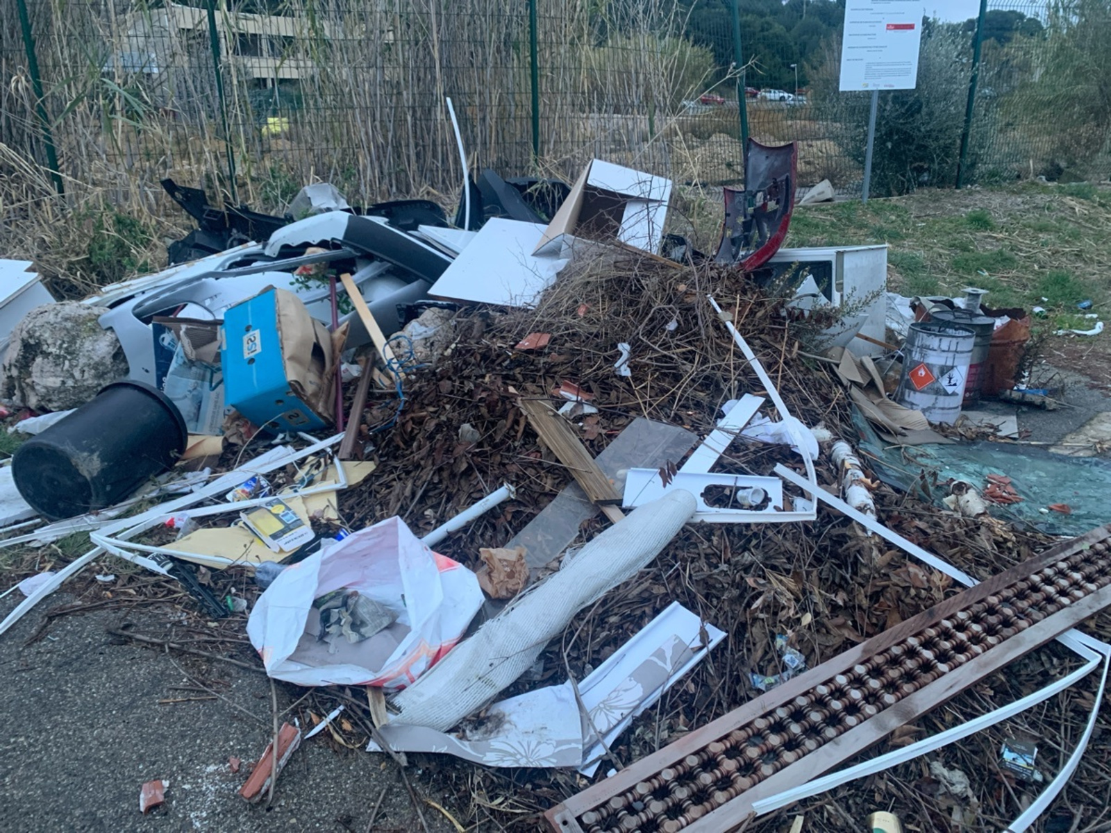 Des déchets se trouvent tout le long d’un chemin en terre entre la gare de Vitrolles et Airbus