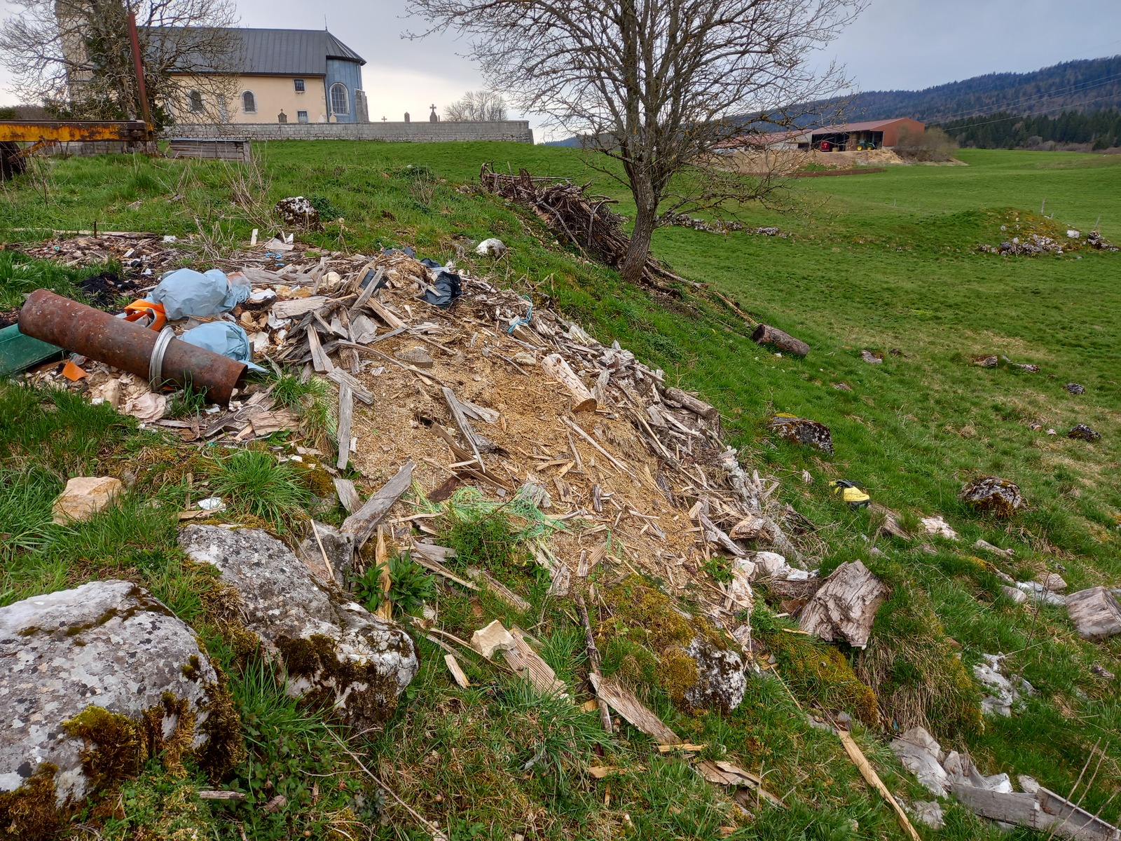 Ce dépôt représenterait un volume de 5 à 10 mètres cubes sur un terrain privé, jouxtant un chemin communal où des enfants circulent.
