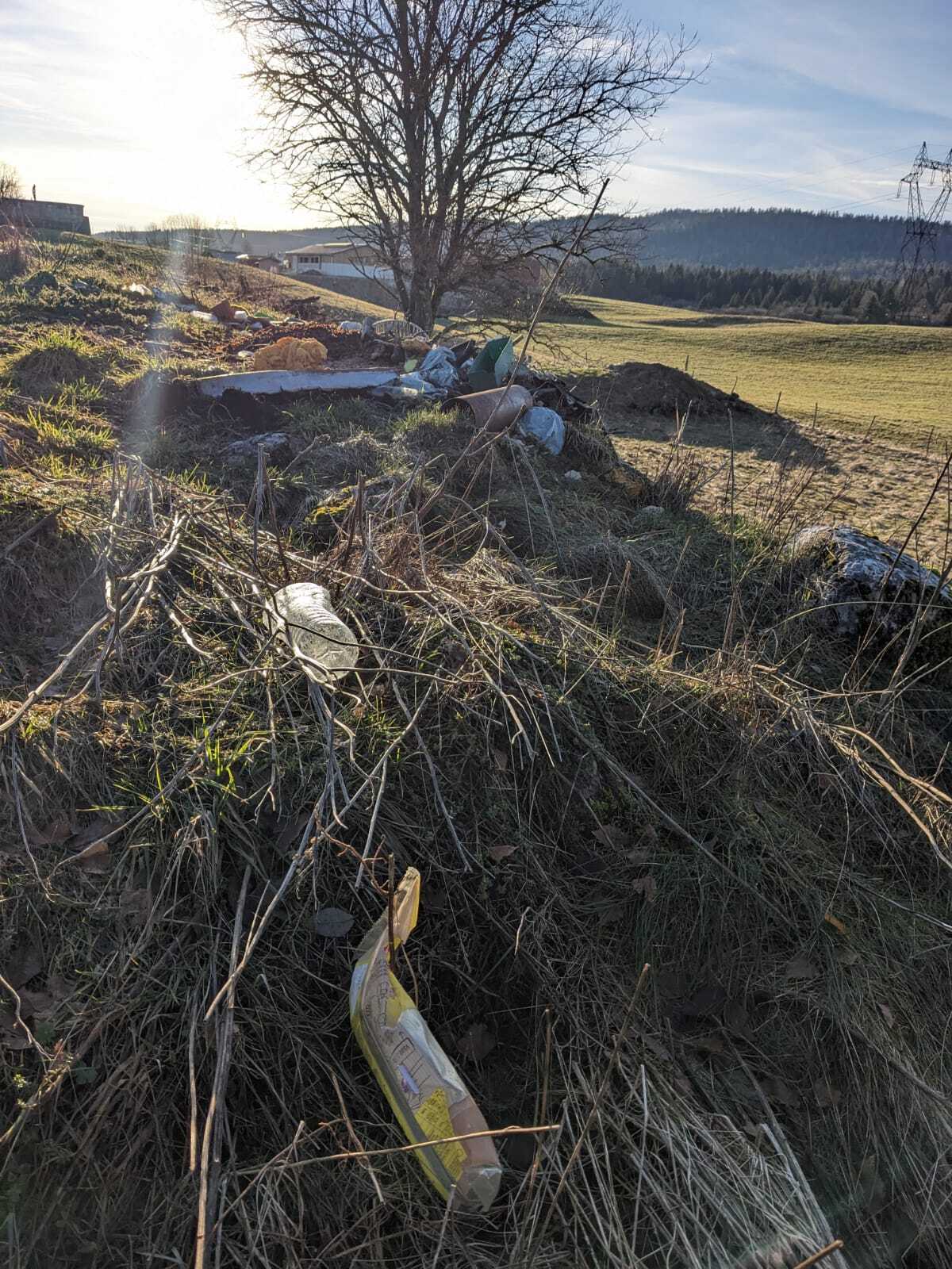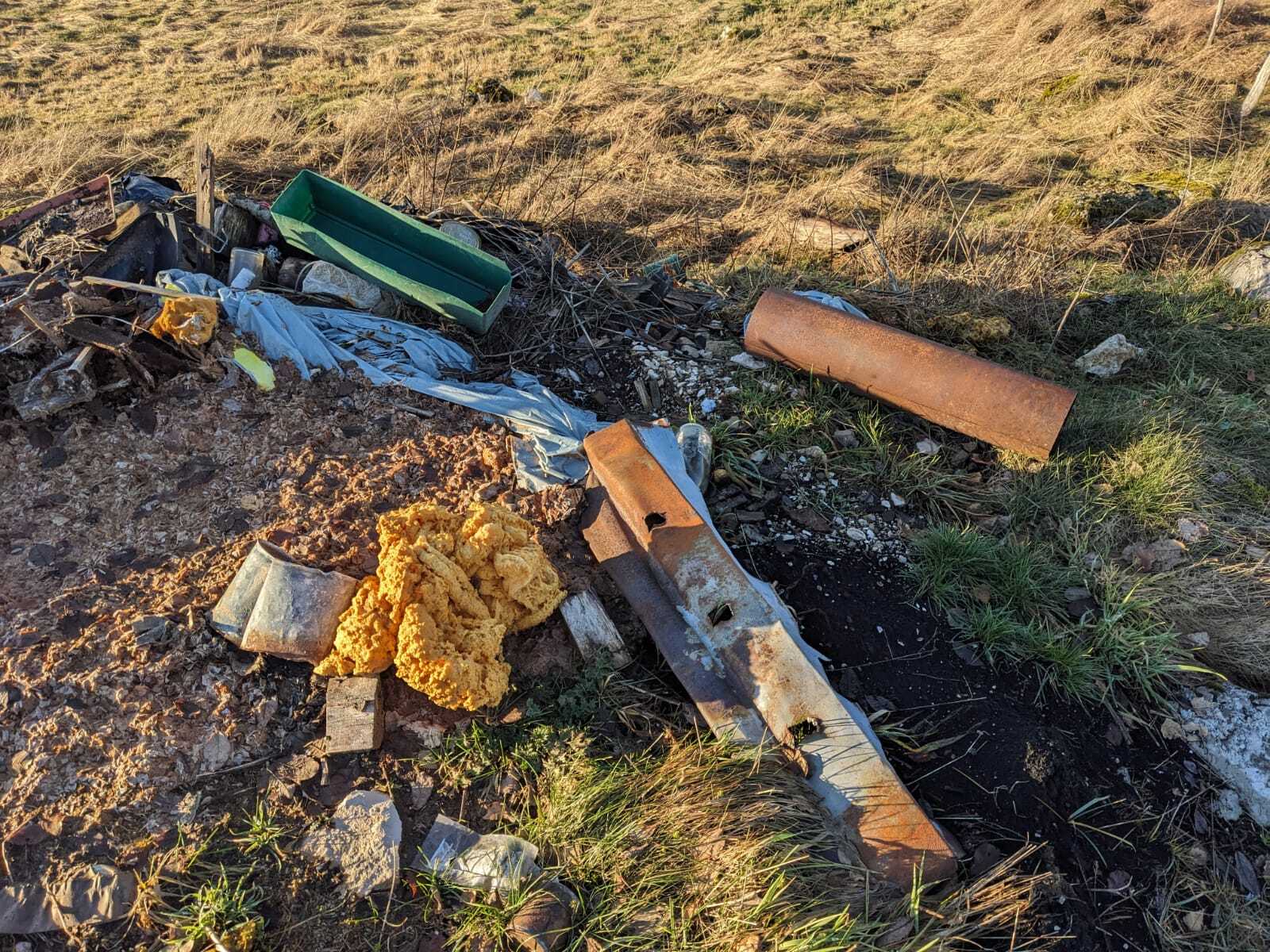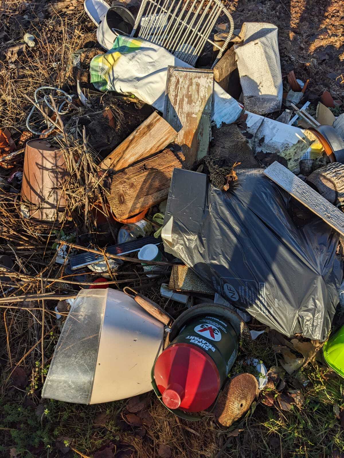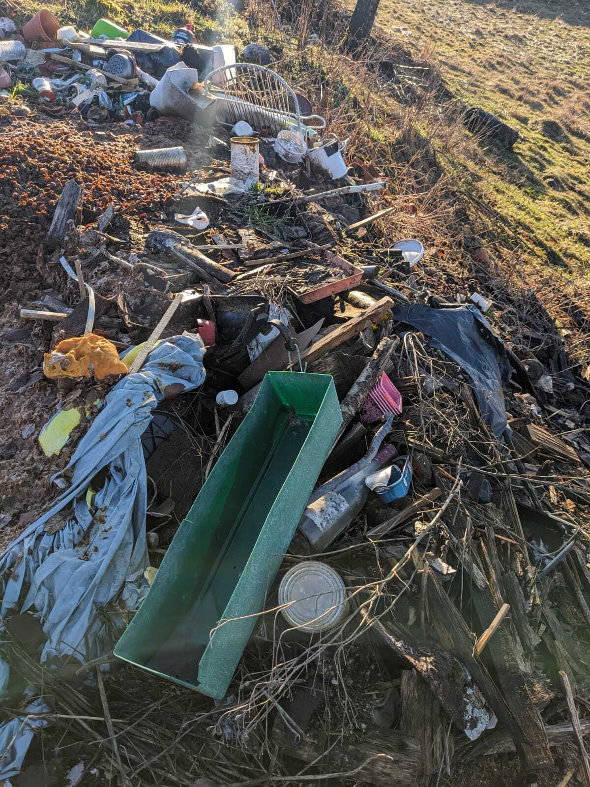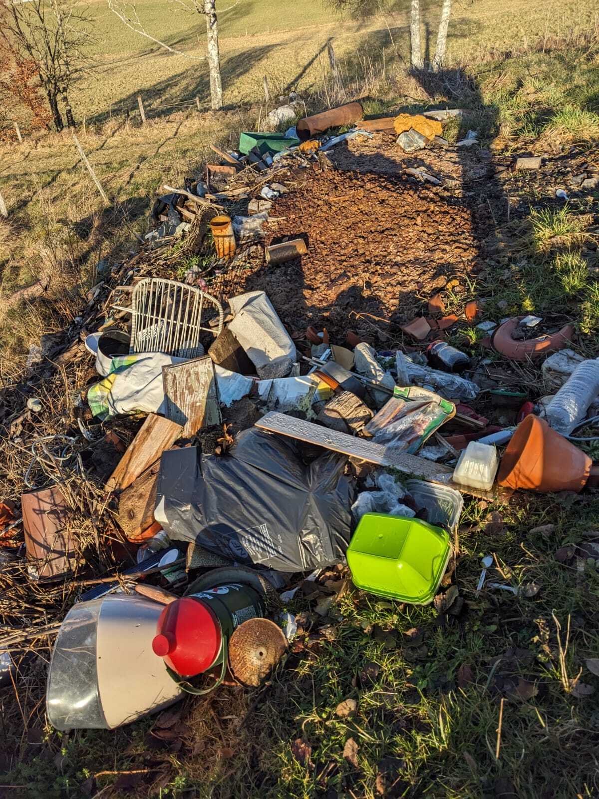 Ce signalement concerne un dépôt de déchets ménager de type conduit de cheminée, karsher, boîte de conserve, bidon.