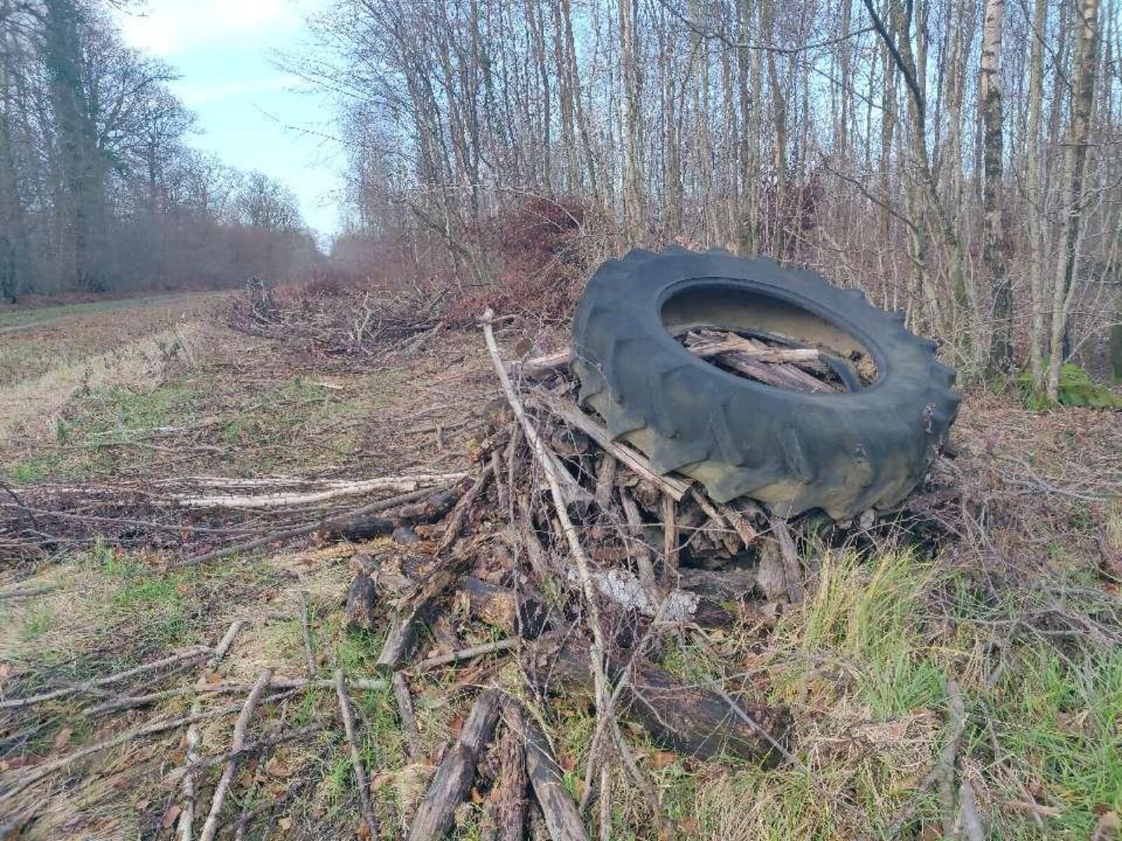 Dépôt sauvage de pneus et autres déchets dans le Parc Régional de la Montagne de Reims. Ce dépôt nuit à l'image de la commune ou de l'exploitant forestier et en appelle d'autres.