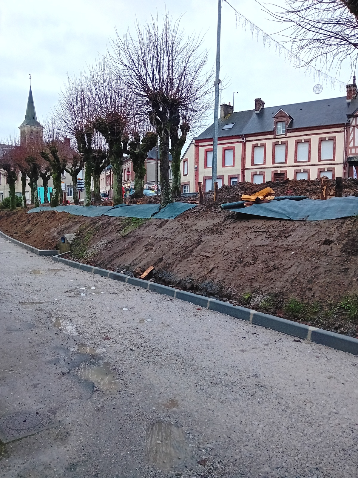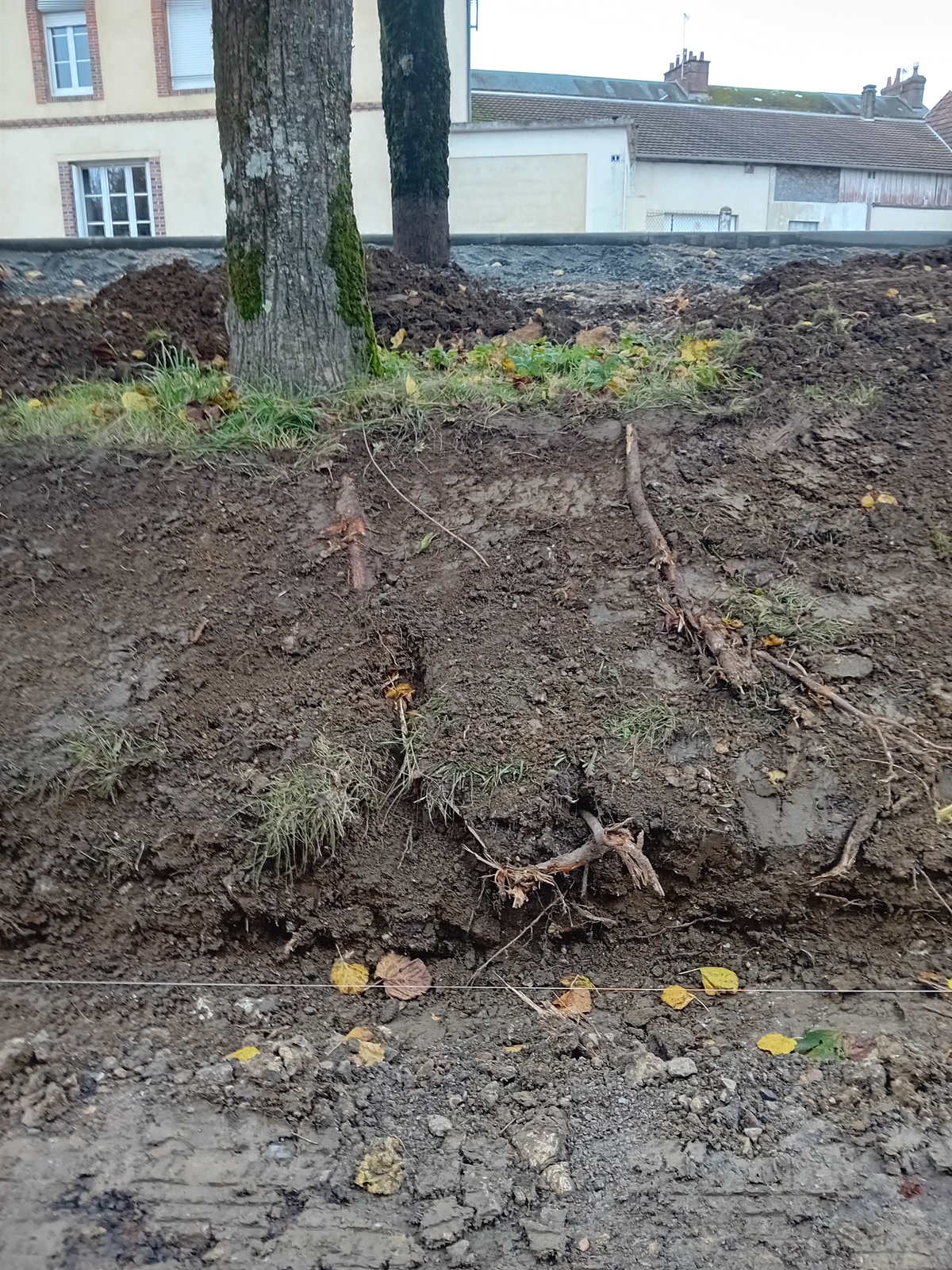 Atteinte à un talus comportant une allée de tilleuls et mise des racines à nues. Pose d'une bâche autour des arbres.
