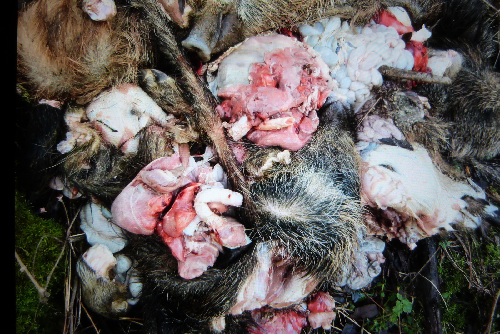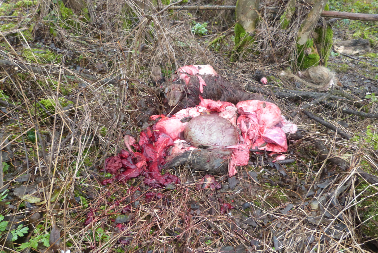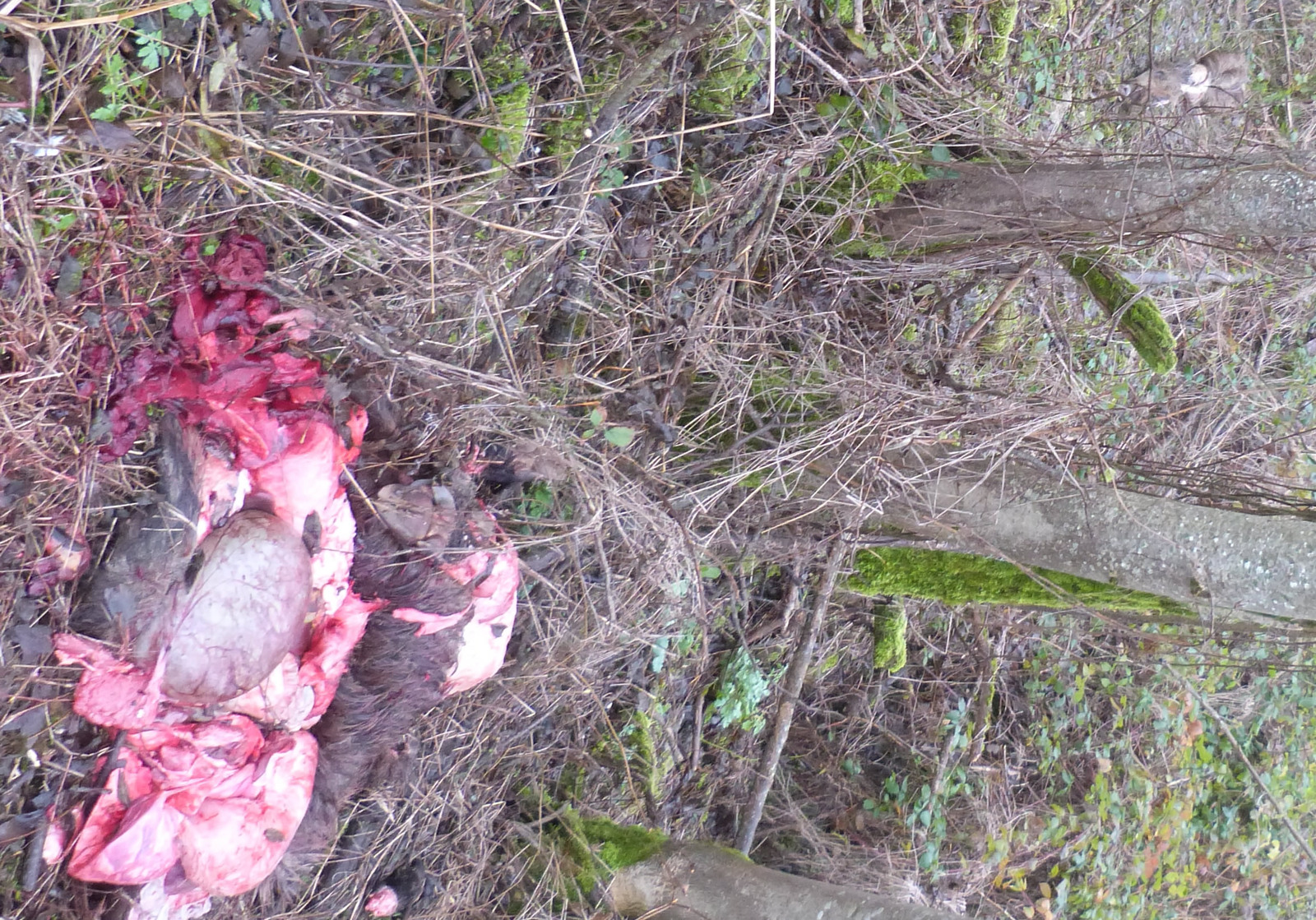 Le dimanche 17 décembre de nouveaux animaux (au moins 3) sont encore dépecés au bord du chemin et les têtes, peaux et boyaux sont à nouveau abandonnés en lisière du bois, au même endroit que le 3 décembre.