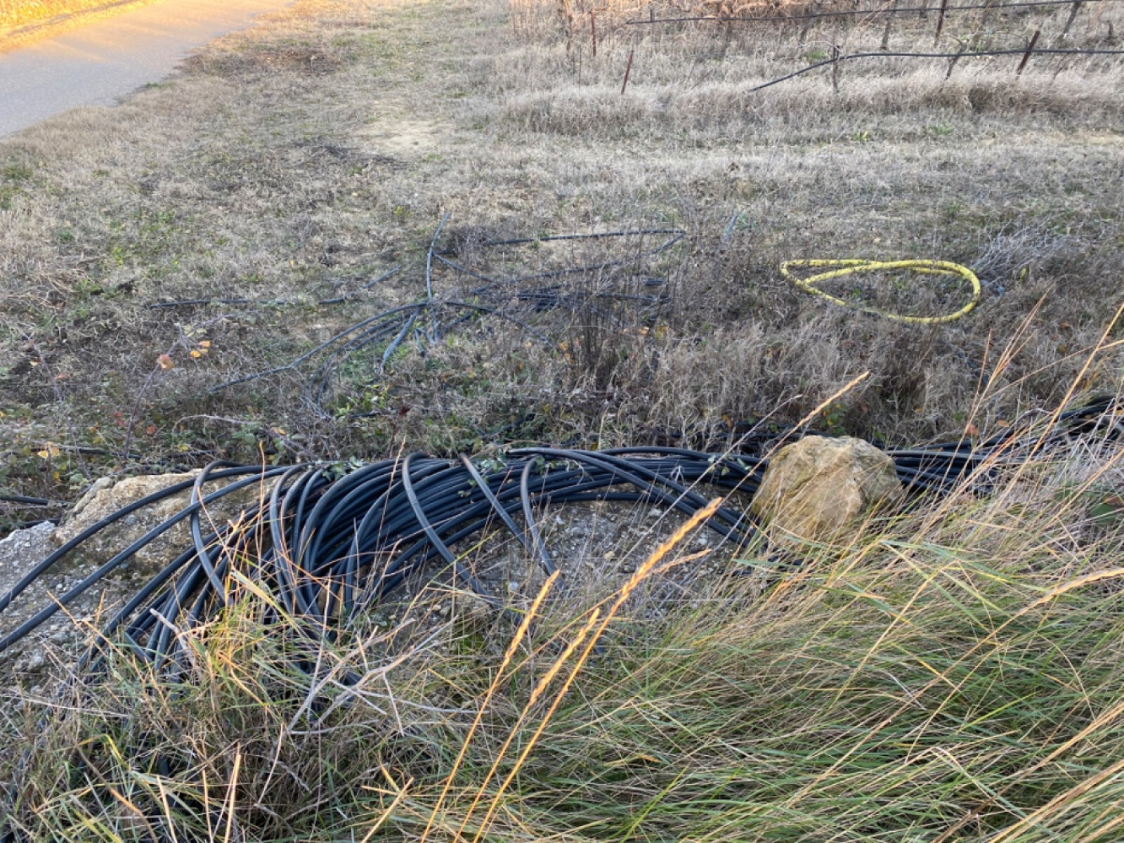 Tuyau plastique en bordure de parcelle de vigne à mondragon.