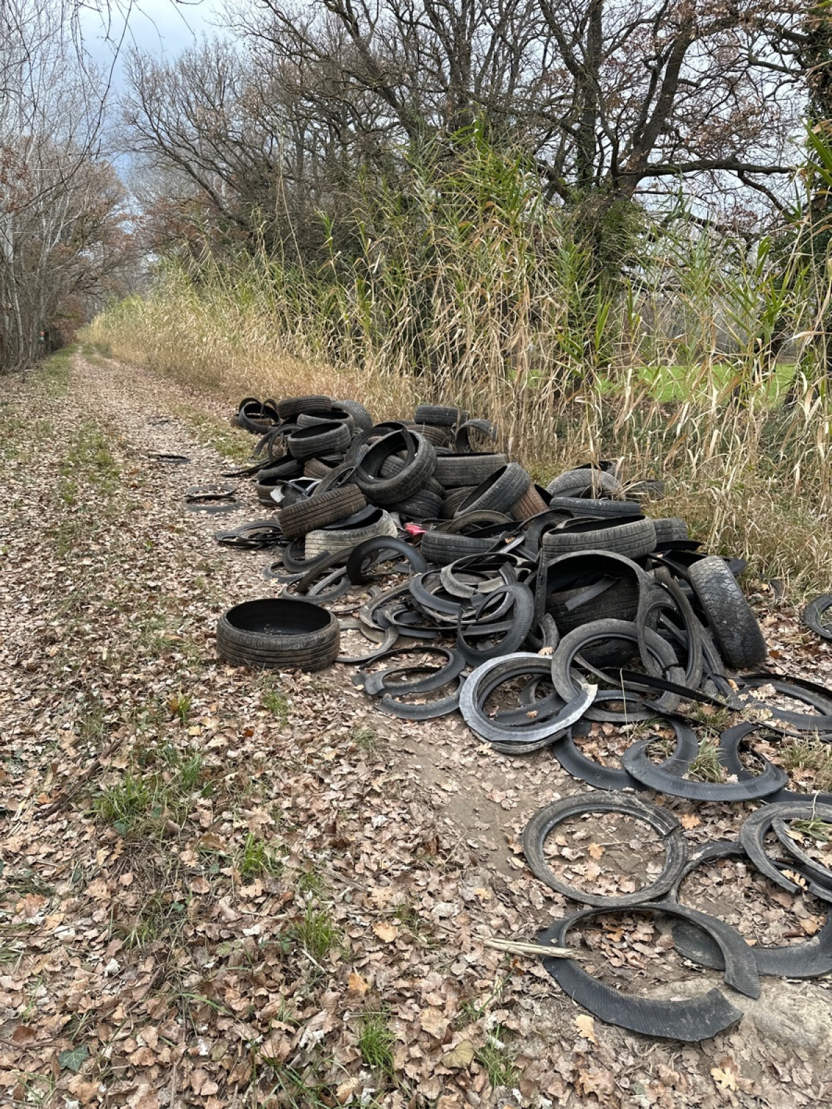 Tas de pneus dans l'Espace Naturel Sensible de Belle Île à Aubignan