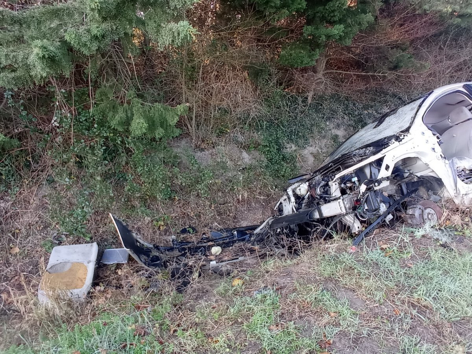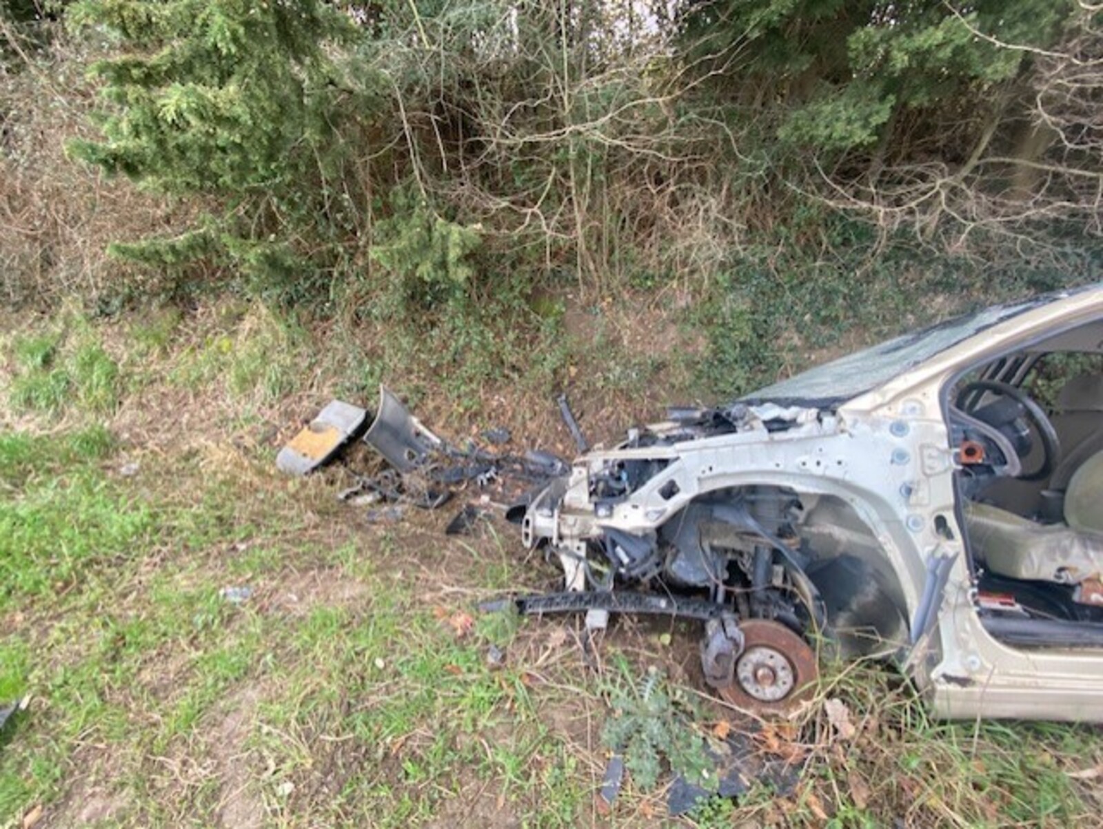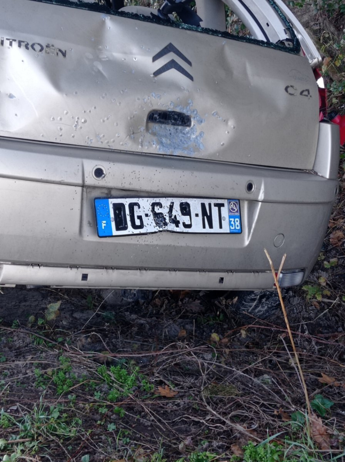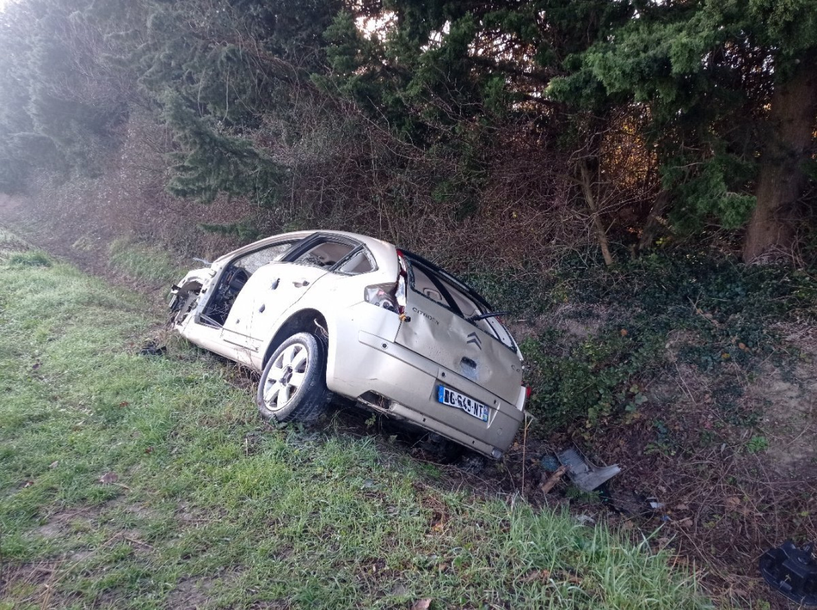 Epave de véhicule accidenté (citroen C4) en bord de route à Mondragon.