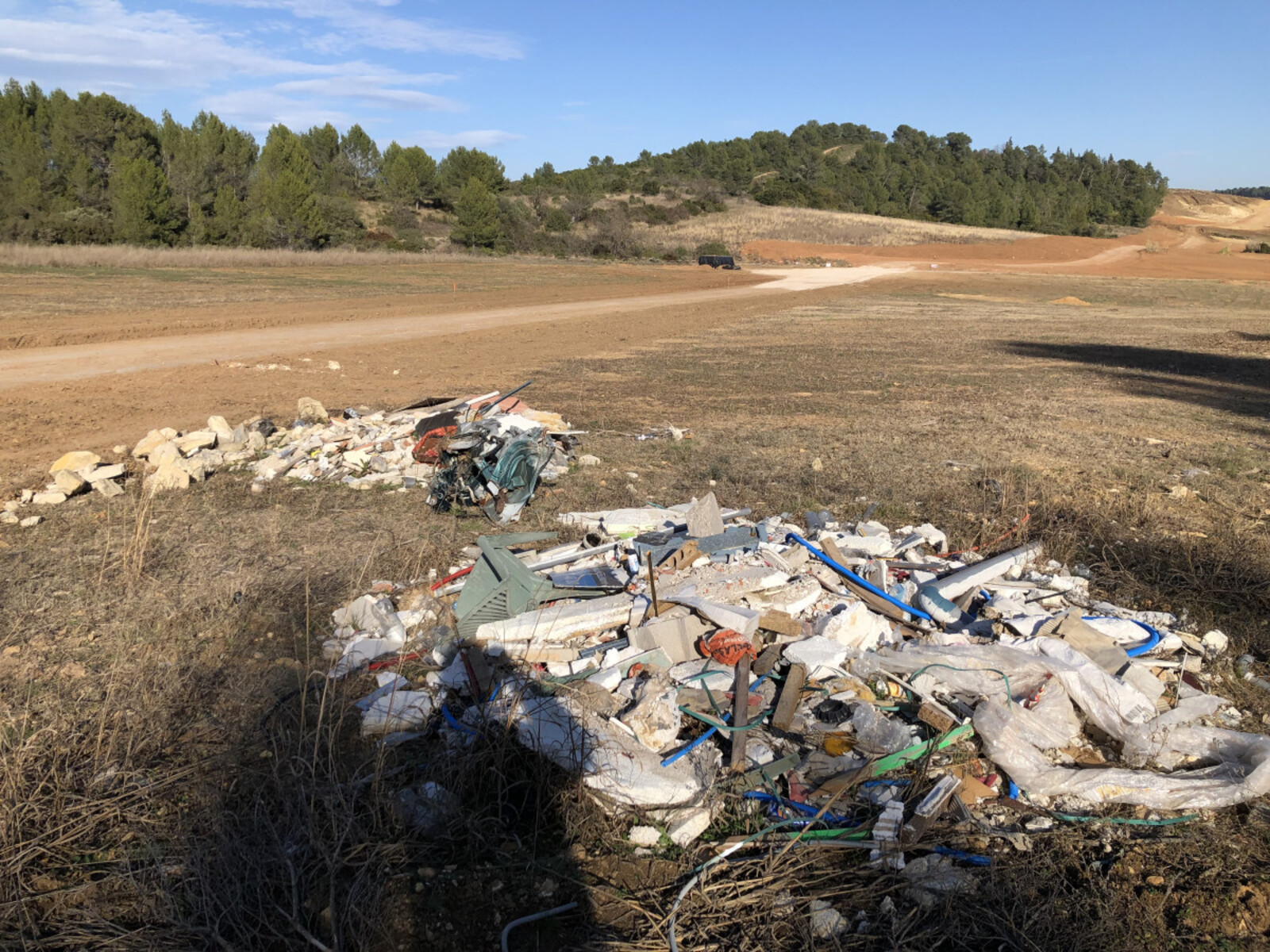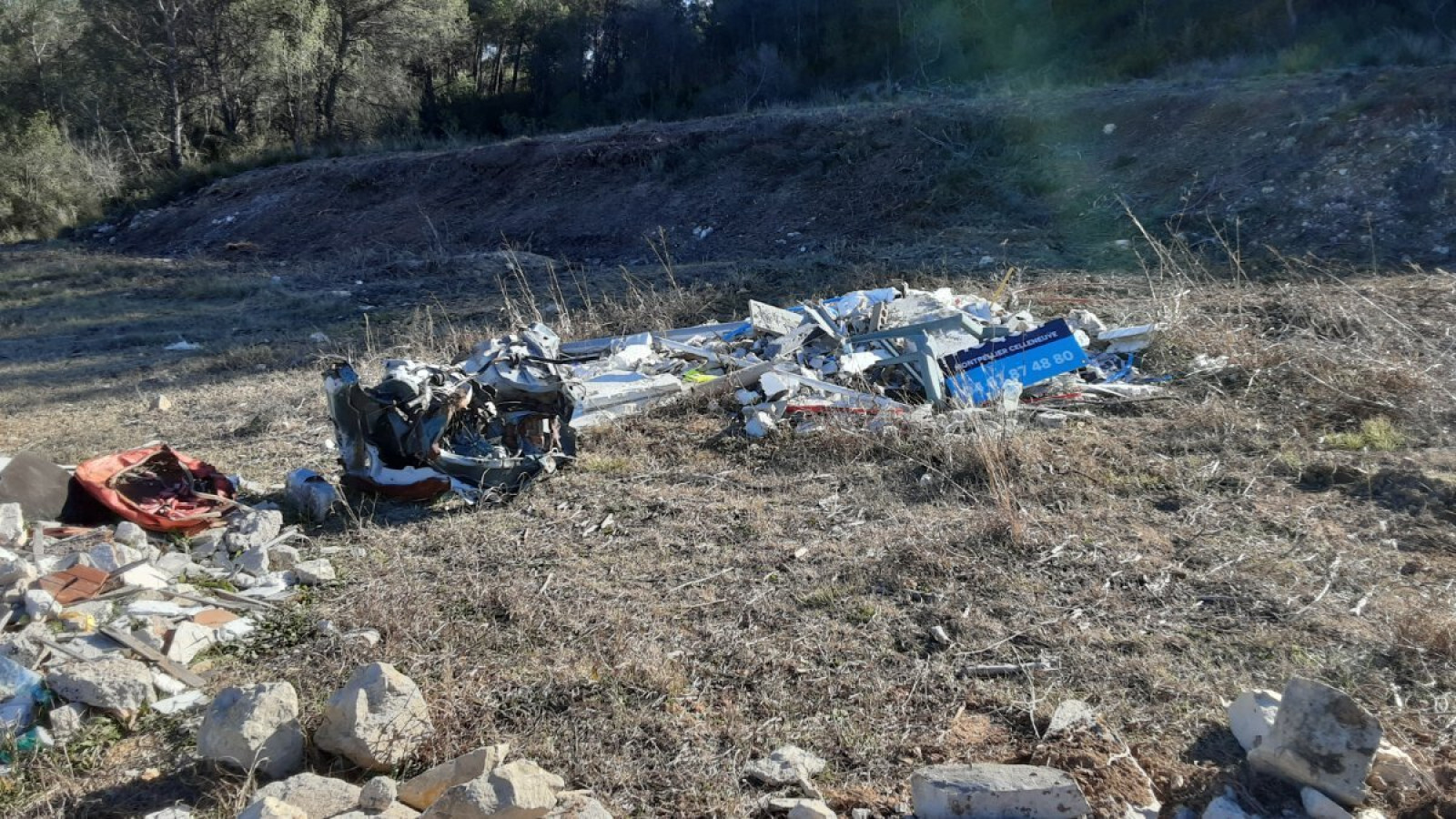 Dépôt sauvage de déchets en zone naturelle