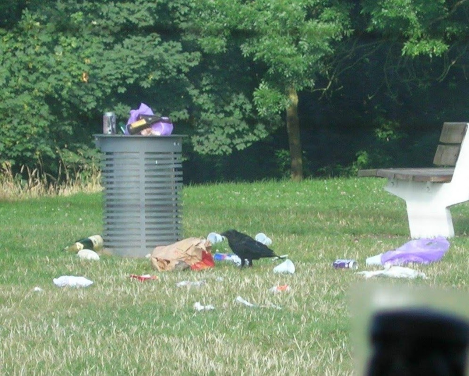 les animaux opportunistes viennent se nourrir des déchets alimentaires présents. Par conséquent, beaucoup de déchets sont répandus sur cet espace vert et dans la forêt et le ravin en contre-bas.