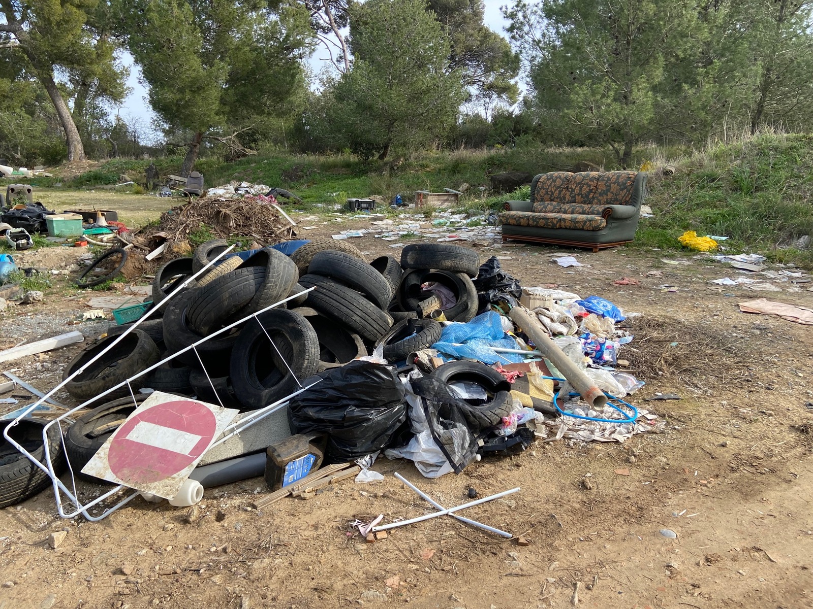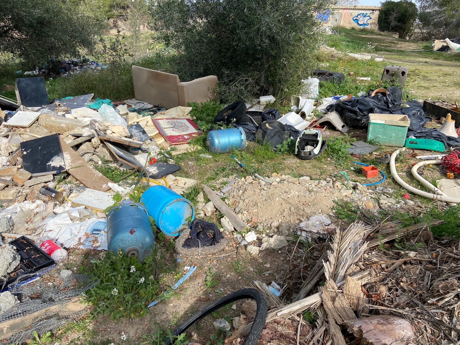 Dépôt sauvage de nombreux déchets en zone agricole.