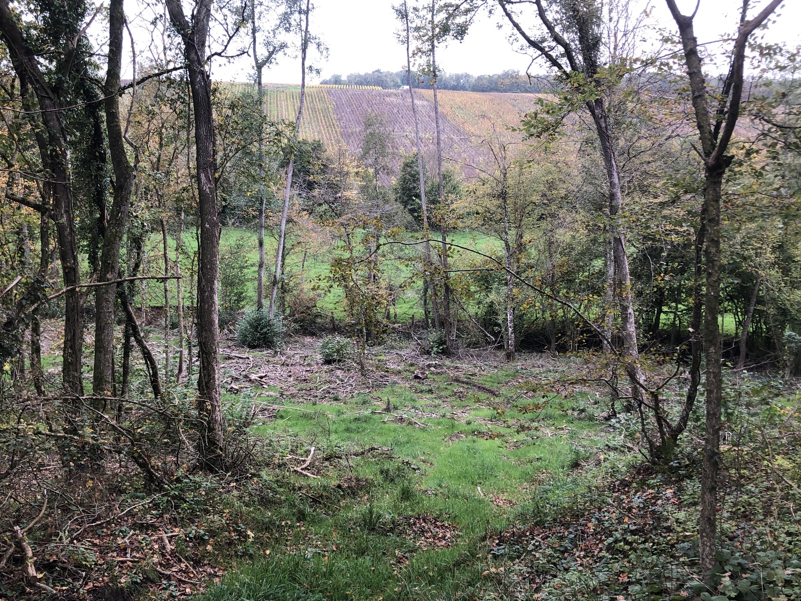 Coupe d'arbres importantes dans un petit bois qui suit le ruisseau de Champvoisy. Il s'agit d'une infraction liée à l'interdiction "d'abattre ou de porter atteinte à un arbre ou de compromettre la conservation ou de modifier radicalement l'aspect d'un ou de plusieurs arbres d'une allée ou d'un alignement d'arbres", concernant les allées d'arbres et alignements d'arbres qui bordent les voies ouvertes à la circulation publique (L350-3, Code de l’environnement)