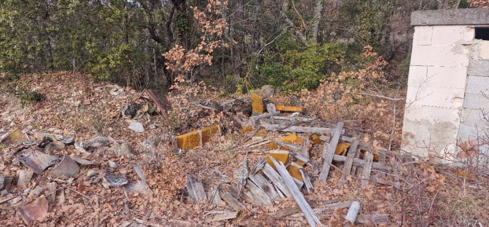 Dépôt sauvage de tuiles, sommier en fer, et plaques d'isolation, au bout du chemin du Limon à Mazan