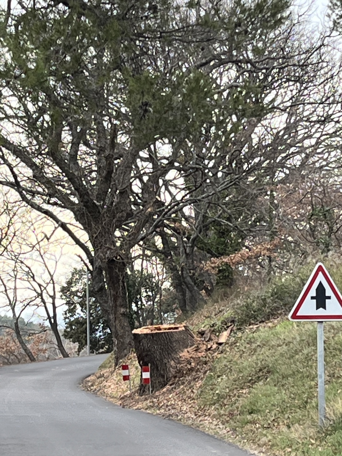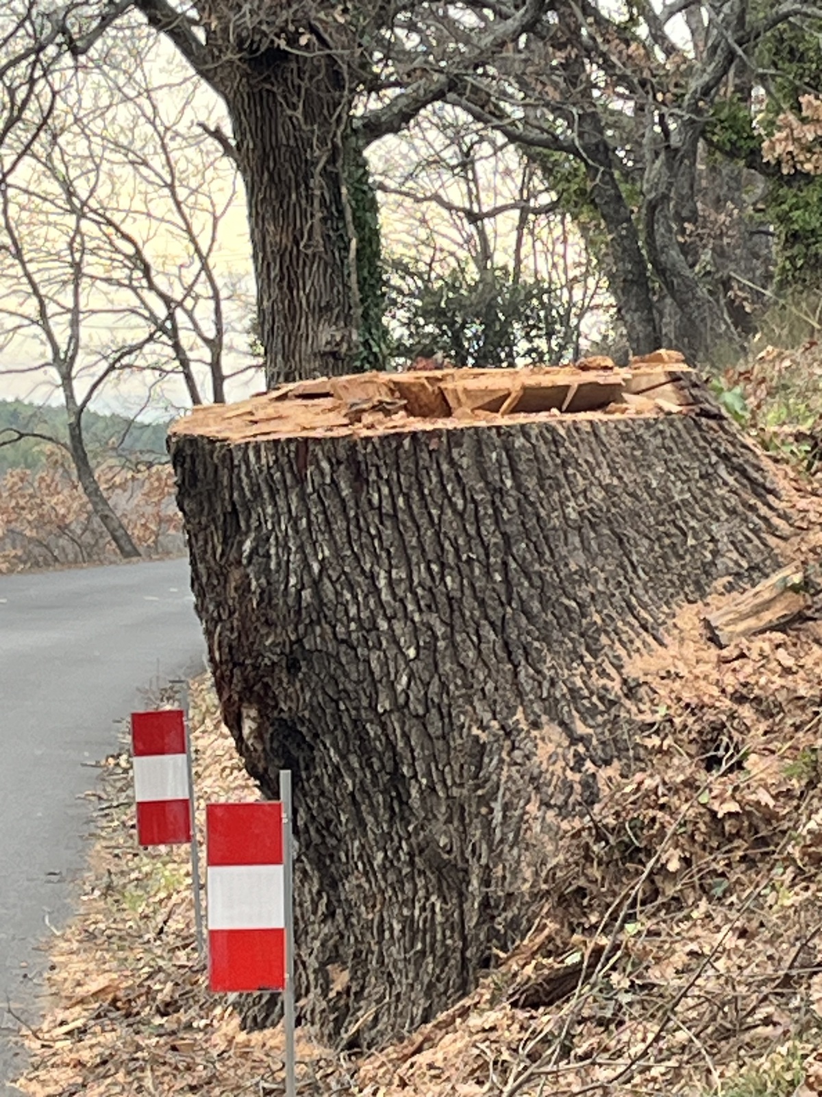 Abattage d'arbre (chêne) le long de la route à La-Roque-sur-Pernes.