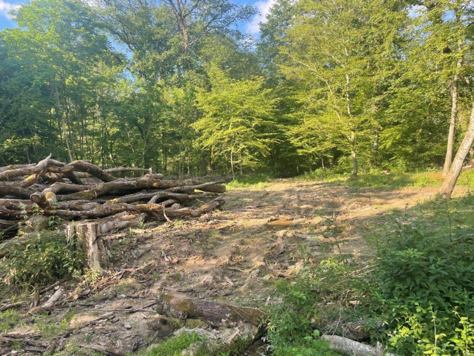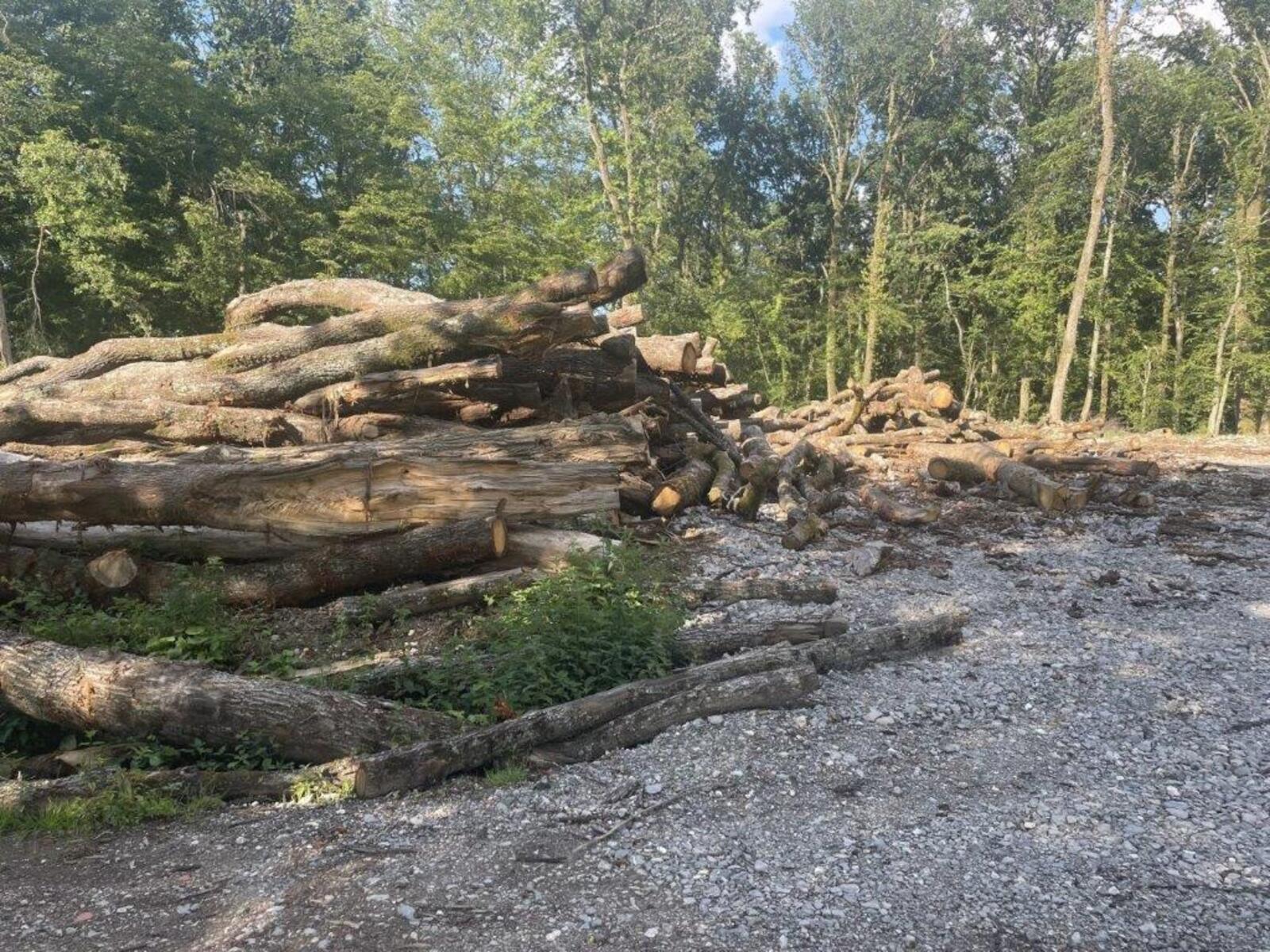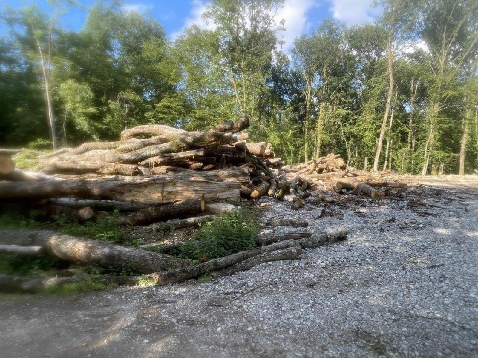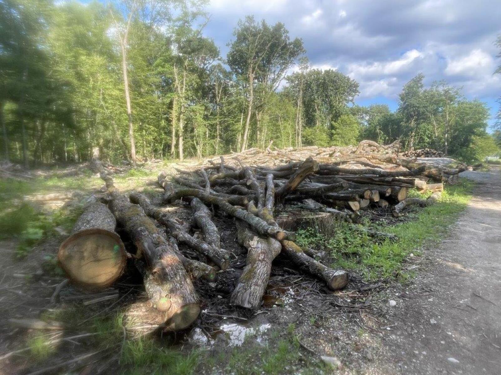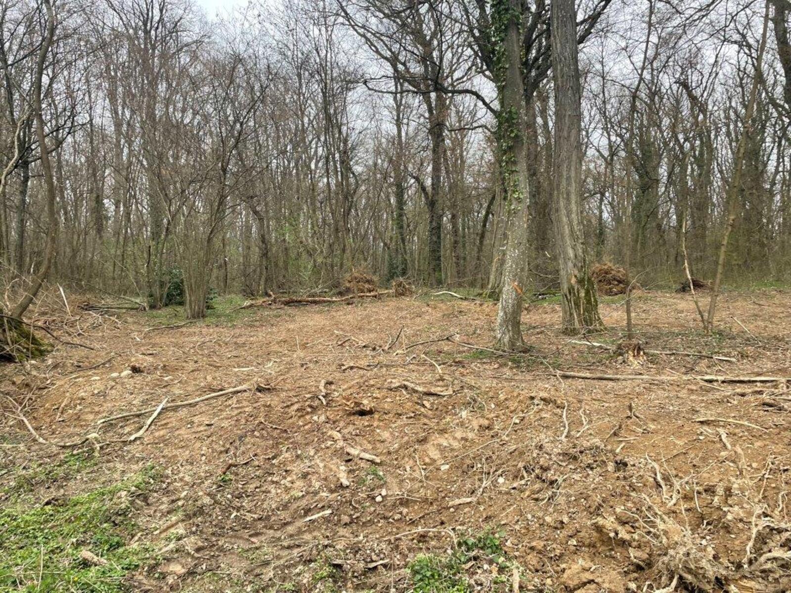 Coupe rase et aménagement avec divers engins dans le Bois de la Bagasse à Ferney-Voltaire.
