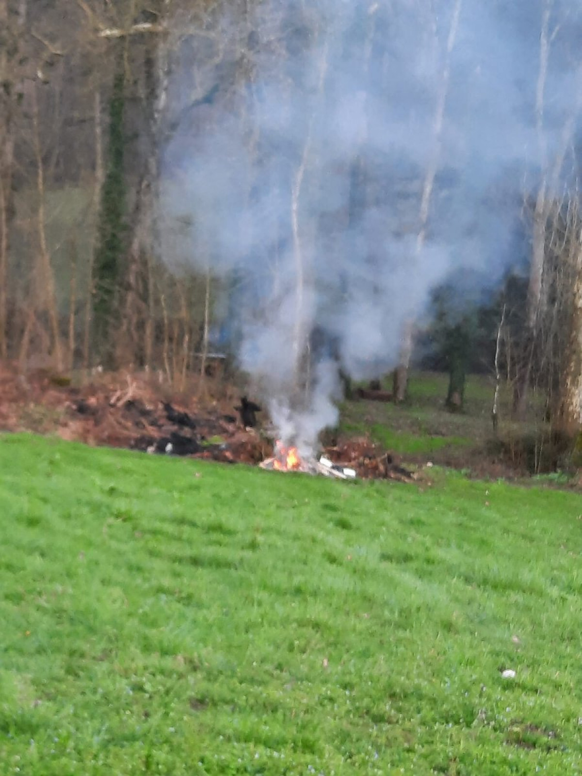 Brûlage répétitif des déchets de tous types (plastiques, cartons, palettes...).