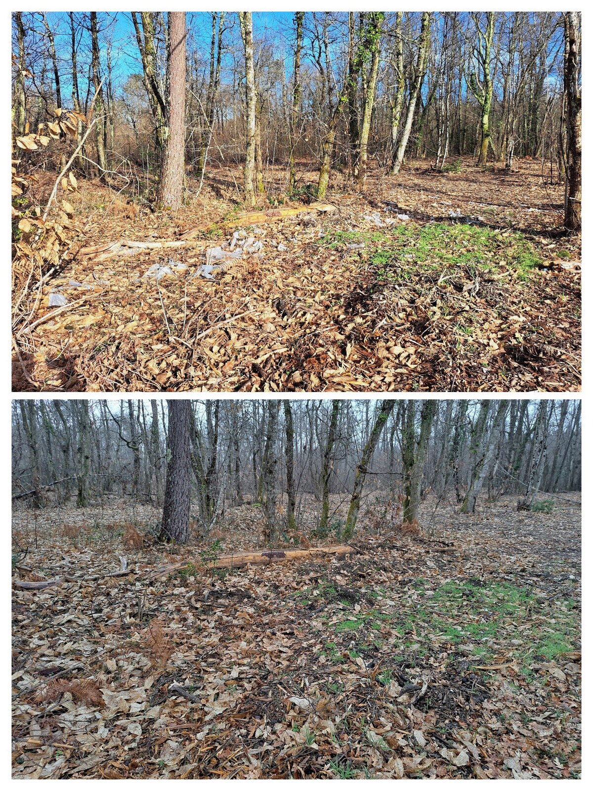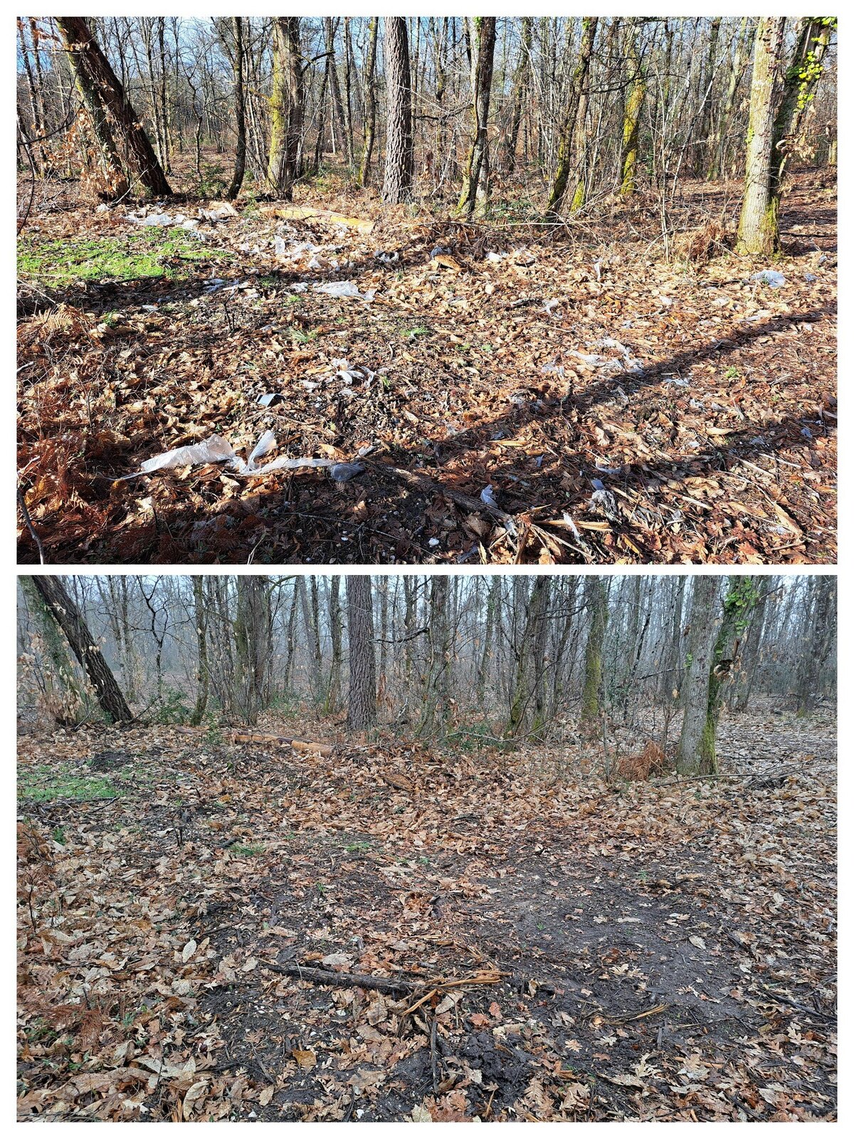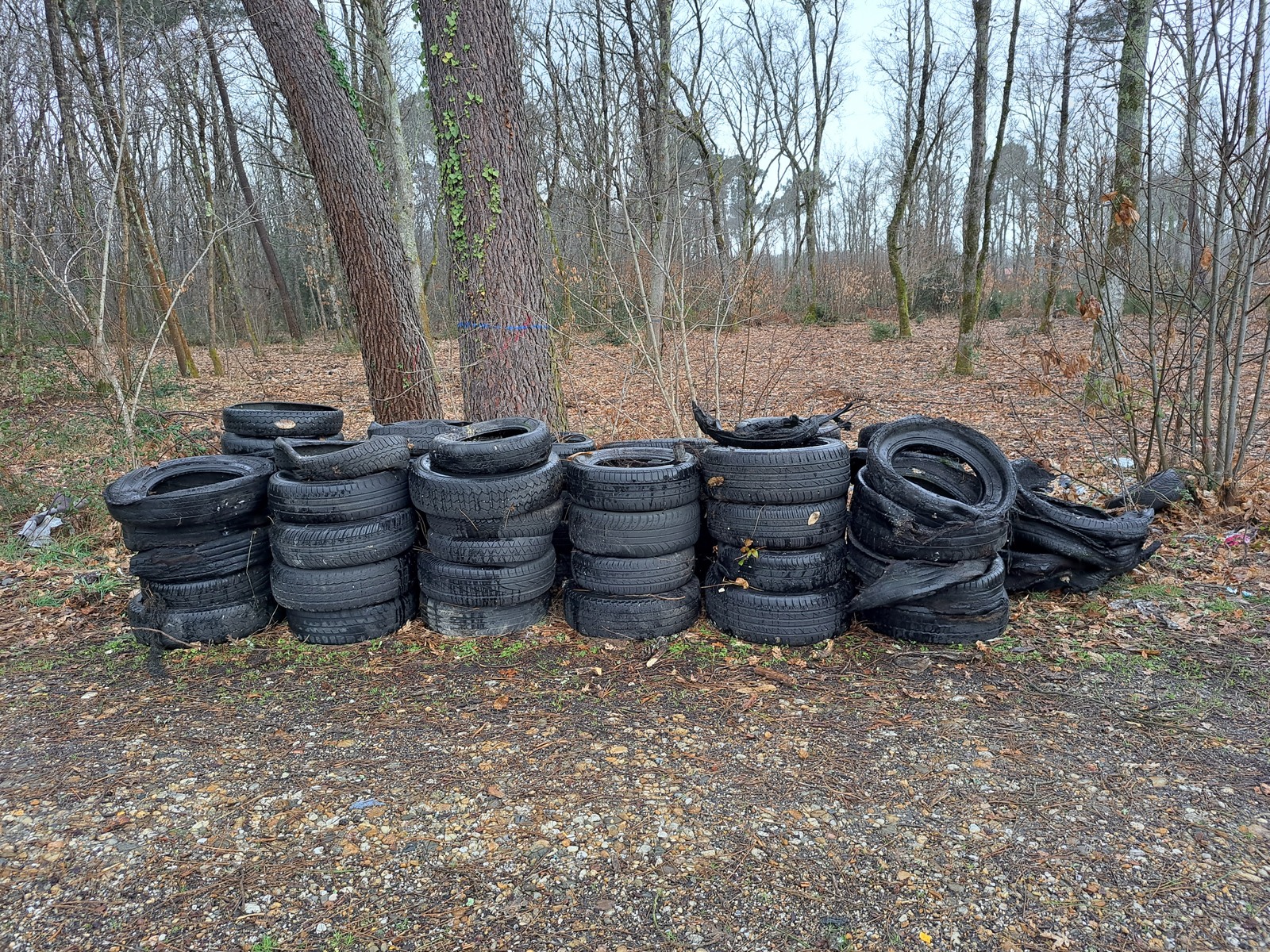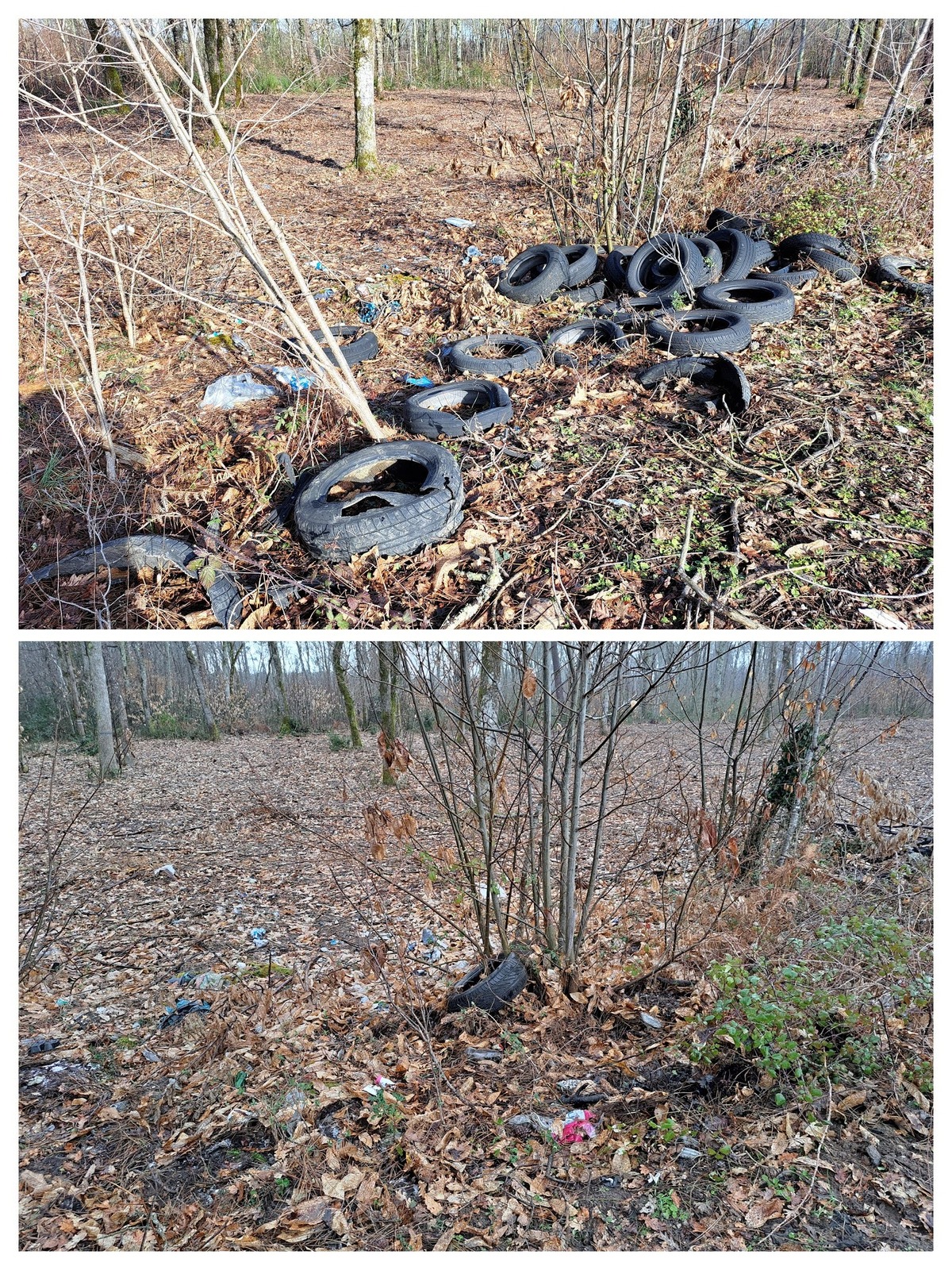 Nous avons également regroupé et laissé sur place les pneus et autres déchets encombrants que nous ne pouvons sans l'aide d'une machine transporter. Vous constaterez sur les photos que les pneus sur cette petite zone représente environ 4m3, sachant que nous avons dû en laisser en place, trop difficile d'accès.