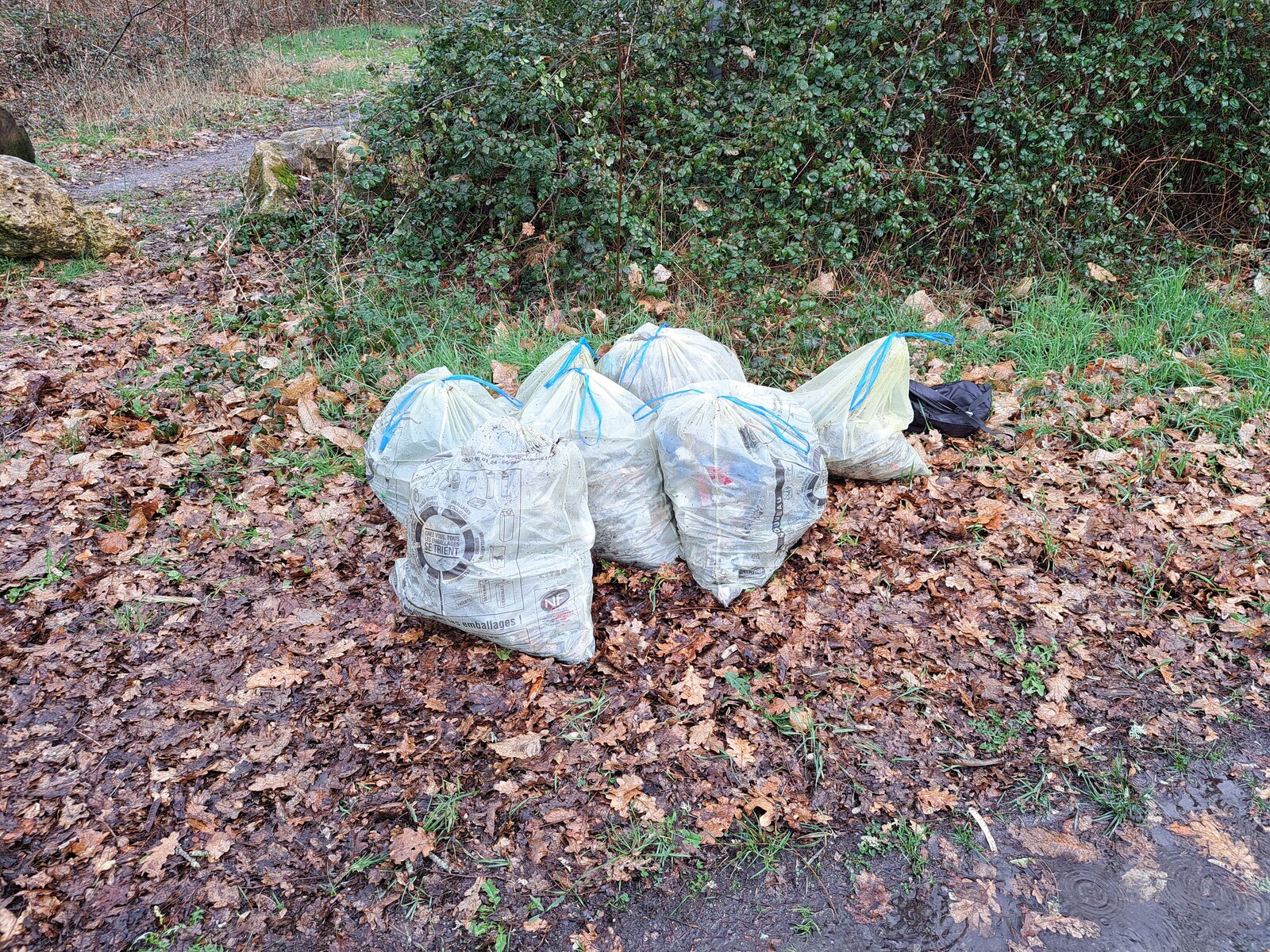 Samedi 24 février, avec une douzaine de bénévoles de l'association ROQUETON ENVIRONNEMENT, nous avons ramassé pendant 3 heures les déchets dans deux types de sacs distincts, les recyclables dans des sacs jaunes, le tout venant dans les noirs et nous porterons à la déchetterie les portables et circuits électroniques.