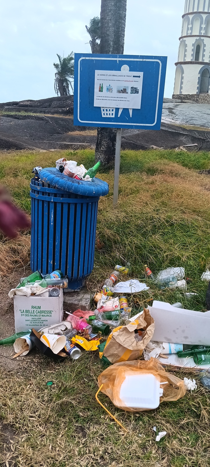 Un signalement concernant un dépôt de déchets, éparpillé en dehors de la poubelle, a été signalé sur une zone proche de l'hotel des Roches, à Kourou, proche de la tour dreyfus.