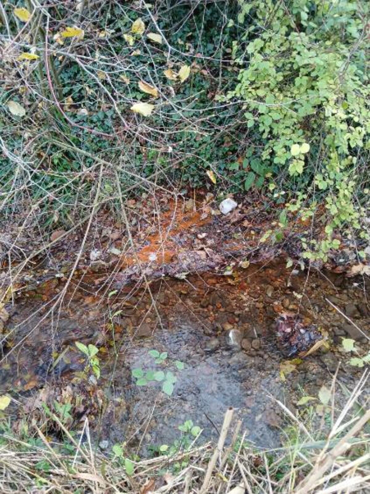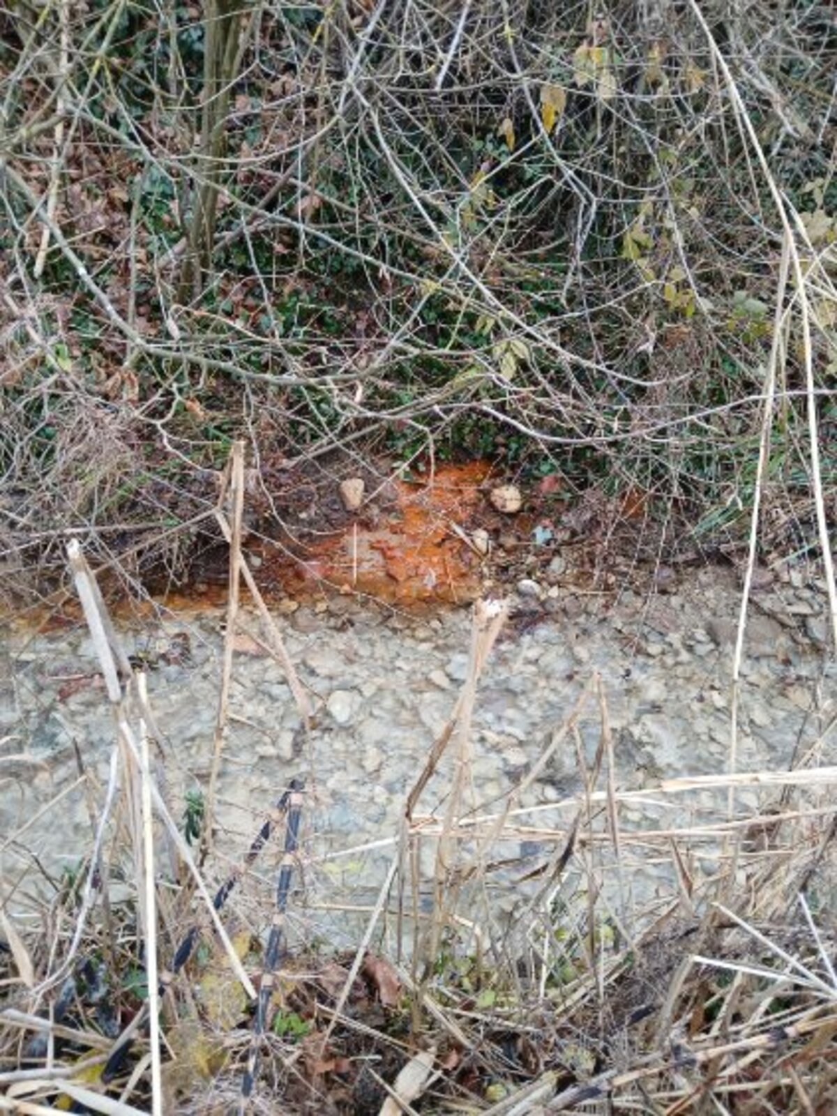 La substance de couleur rouge orangée observée au sein du ruisseau est probablement lié à un phénomène naturel. L'eau en drainant un horizon ferreux, peut entraîner dans les cours d'eau des dépôts d’oxyde ou d’hydroxyde ferrique. En soit, cet apport de sel de fer, quelle qu’en soit l’origine (naturelle ou anthropique) n’est aucunement préoccupant.