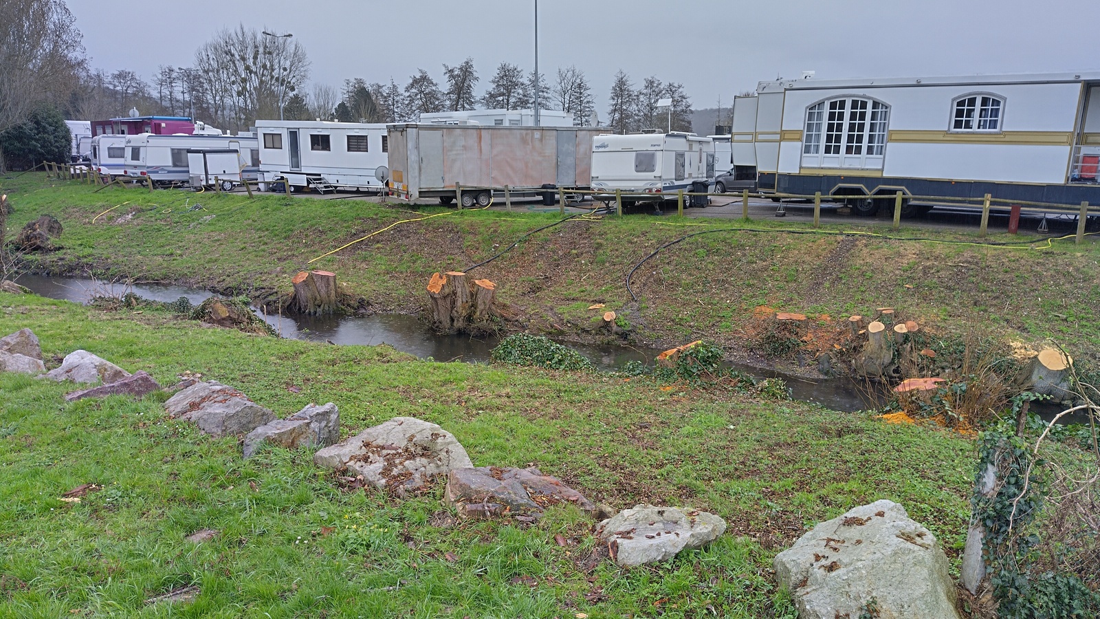 Déversements d'eaux usées dans la rivière de la Risle par plusieurs caravanes/camping-car.