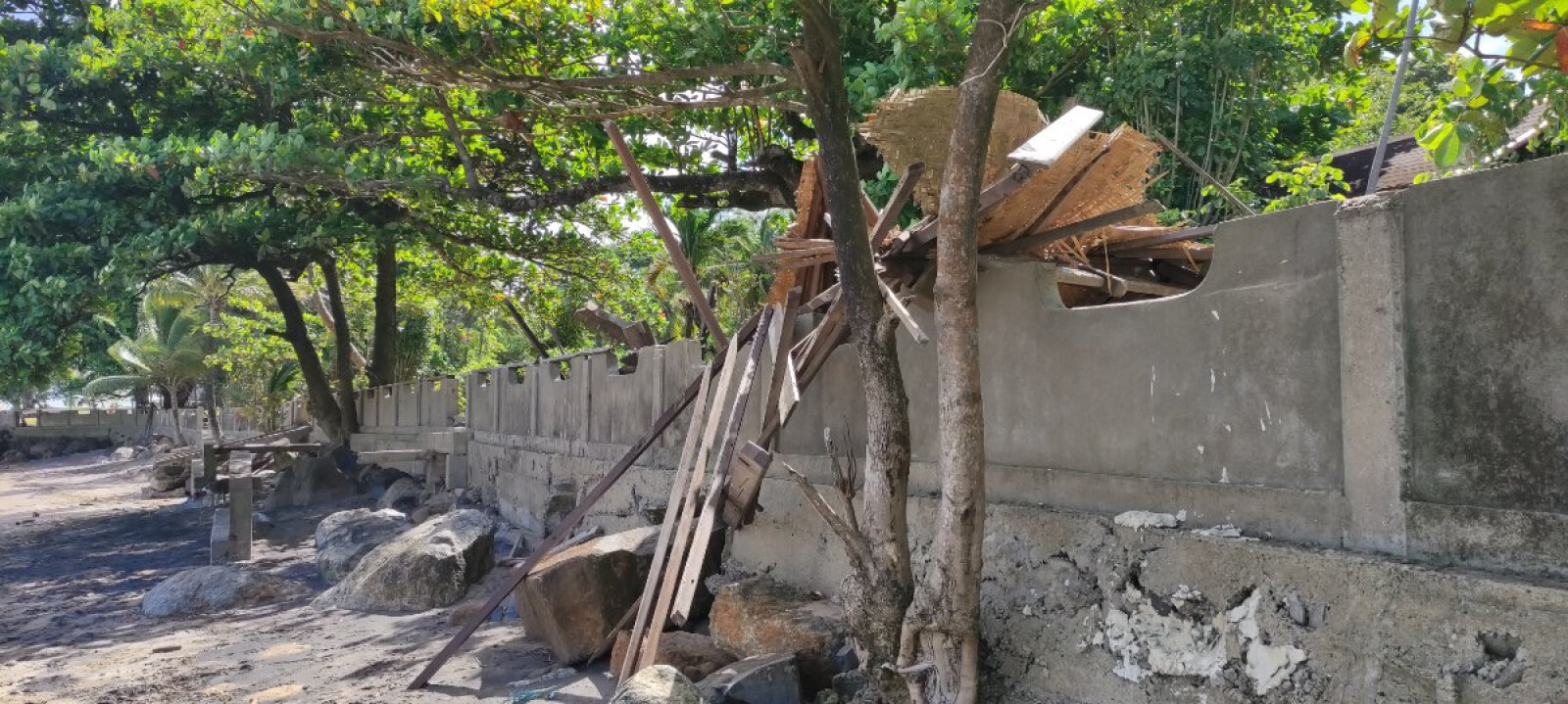 Un signalement a été effectué concernant un établissement abandonné, avec abandon de matériaux qui se déversent dans la mer.