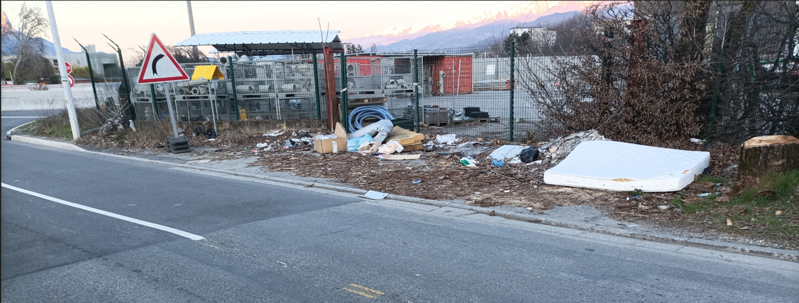 Dépôt de quelques m3 de déchets divers dont un matelas, sur un terrain public en bord de route.