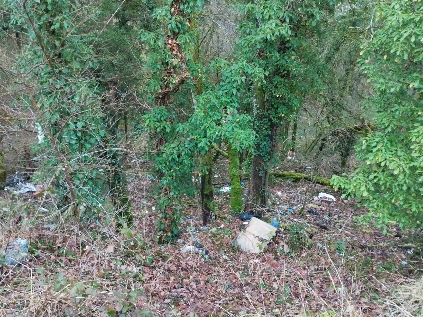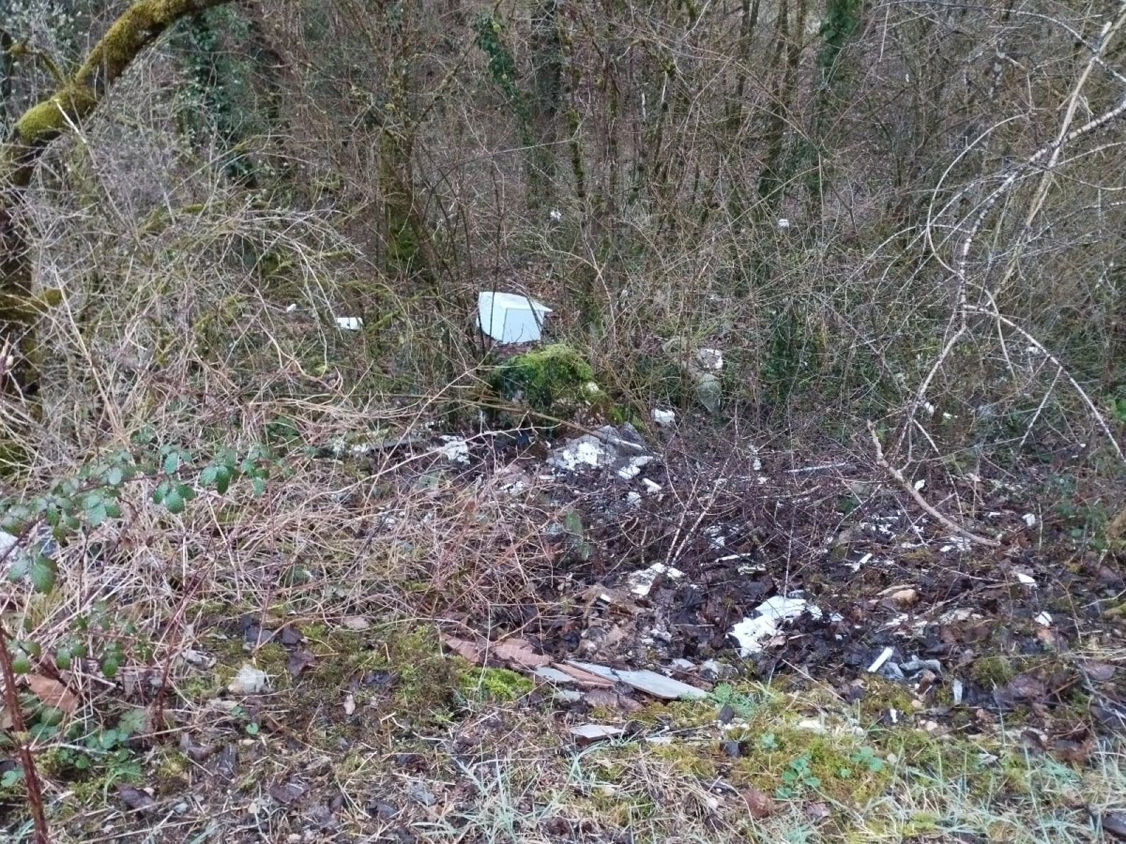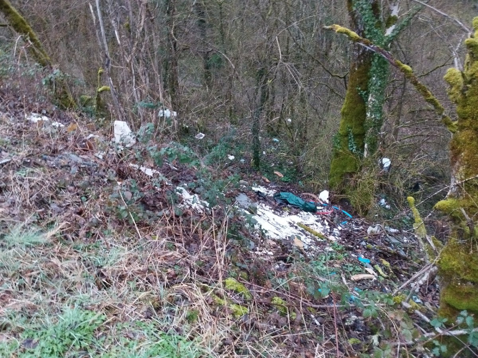 Dépôt sauvage des déchets sur le talus qui longe la route D32 .