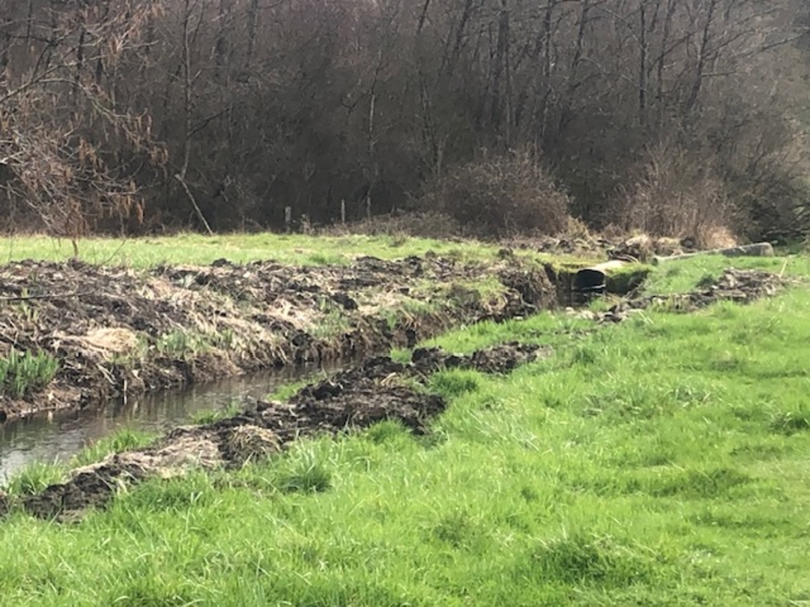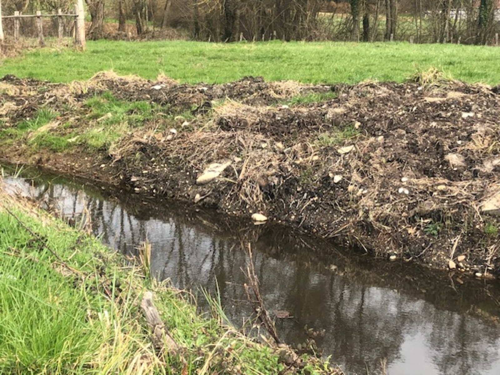 Curage d'une centaine de mètres sur le ruisseau de la Fontaine de la Balaine. Les travaux ont crée une butte de terre d'environ 1 mètre au bord du ruisseau. Le ruisseau est ensuite canalisée dans un tunnel en métal qui semble plutôt ancien.