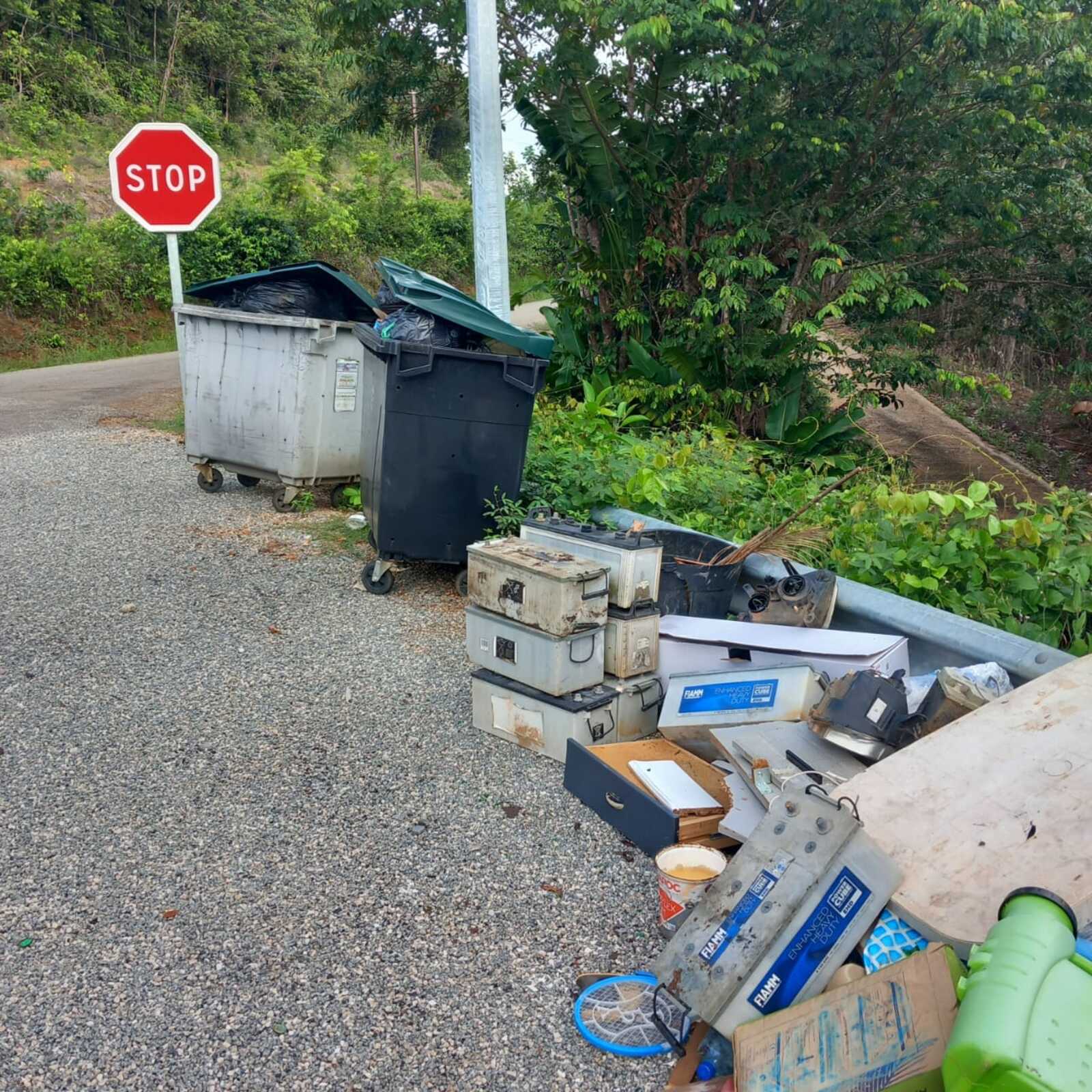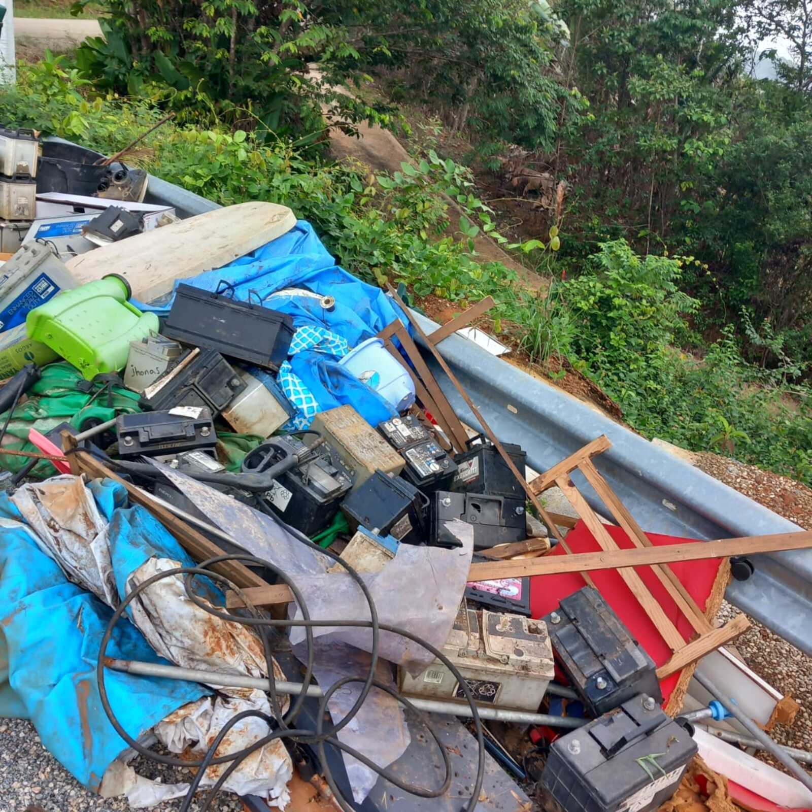 Un dépôt de déchets a été signalé sur au niveau du croisement de la route de Kaw et de la piste goudronée d'Eskol. Ce dépôt s'est créé à coté des bacs. On a pu constaté en mars 2024 une trentaine de batteries automobiles.