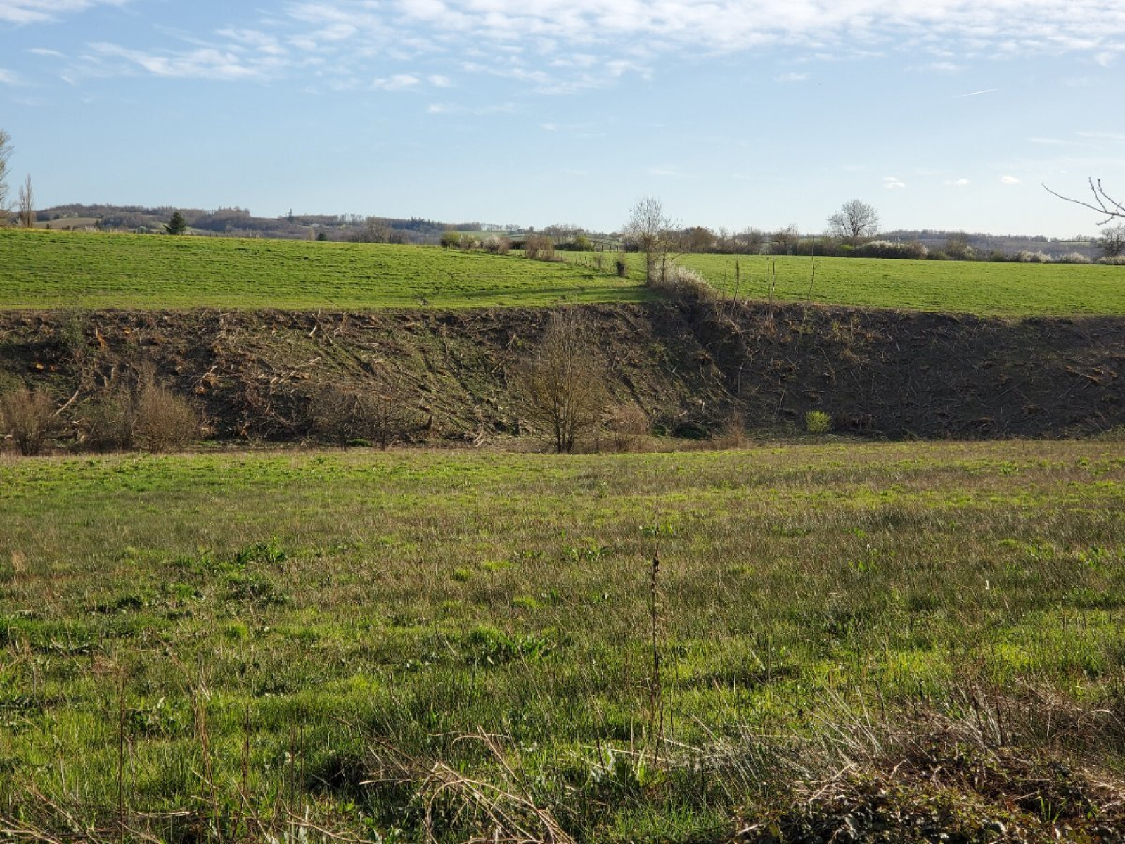 Coupes rases dans la pente du ruisseau sur plusieurs centaines de mètres. Ces coupes sont localisées en face du chemin du bas de la colline qui part de Villeneuve-de-marc, et en direction de Savas-Mépin.