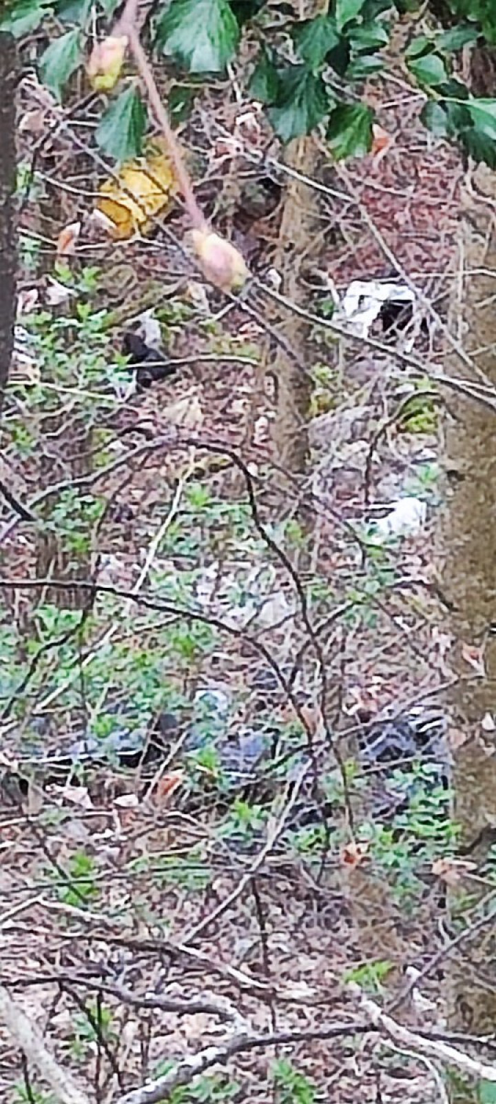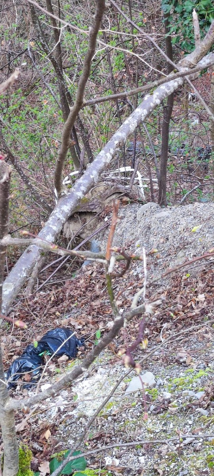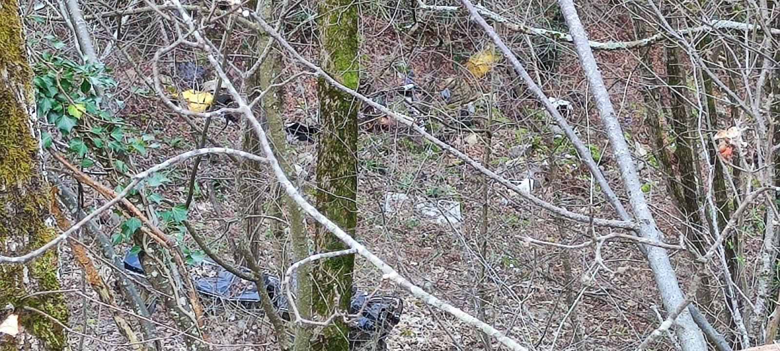 Gros dépôt sauvage de déchets divers: carcasse de voiture, bidons, plastiques, déchets verts...