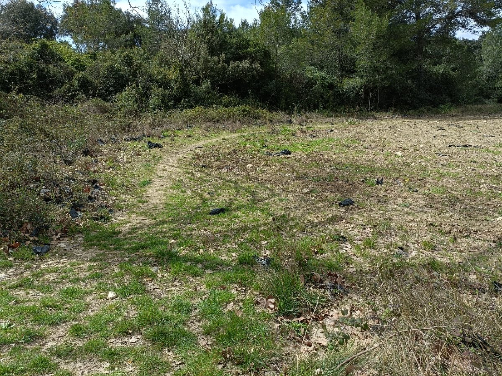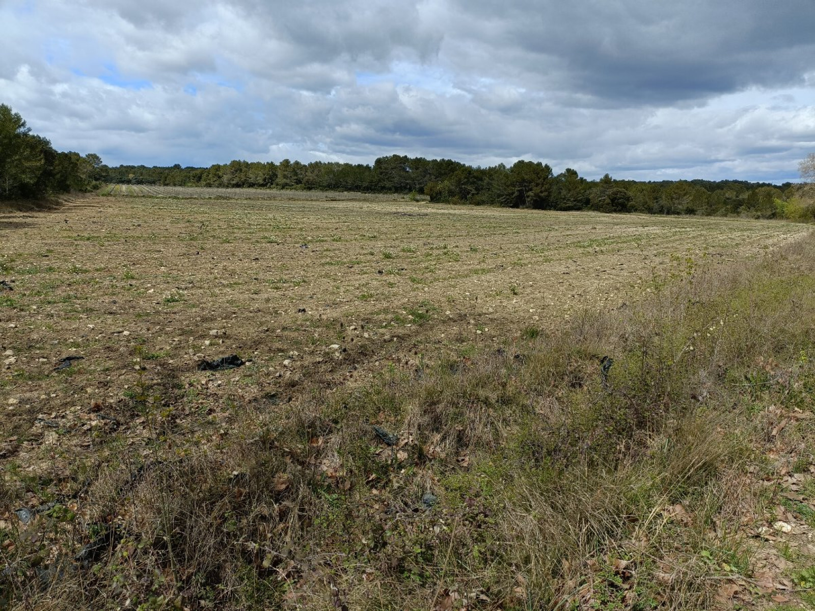 Terrain agricole pollué par les restes de bâches en plastique utilisées pour couvrir le sol.