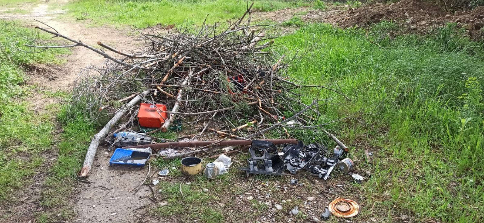 Tas de déchets divers et branches d'arbre à Bollène