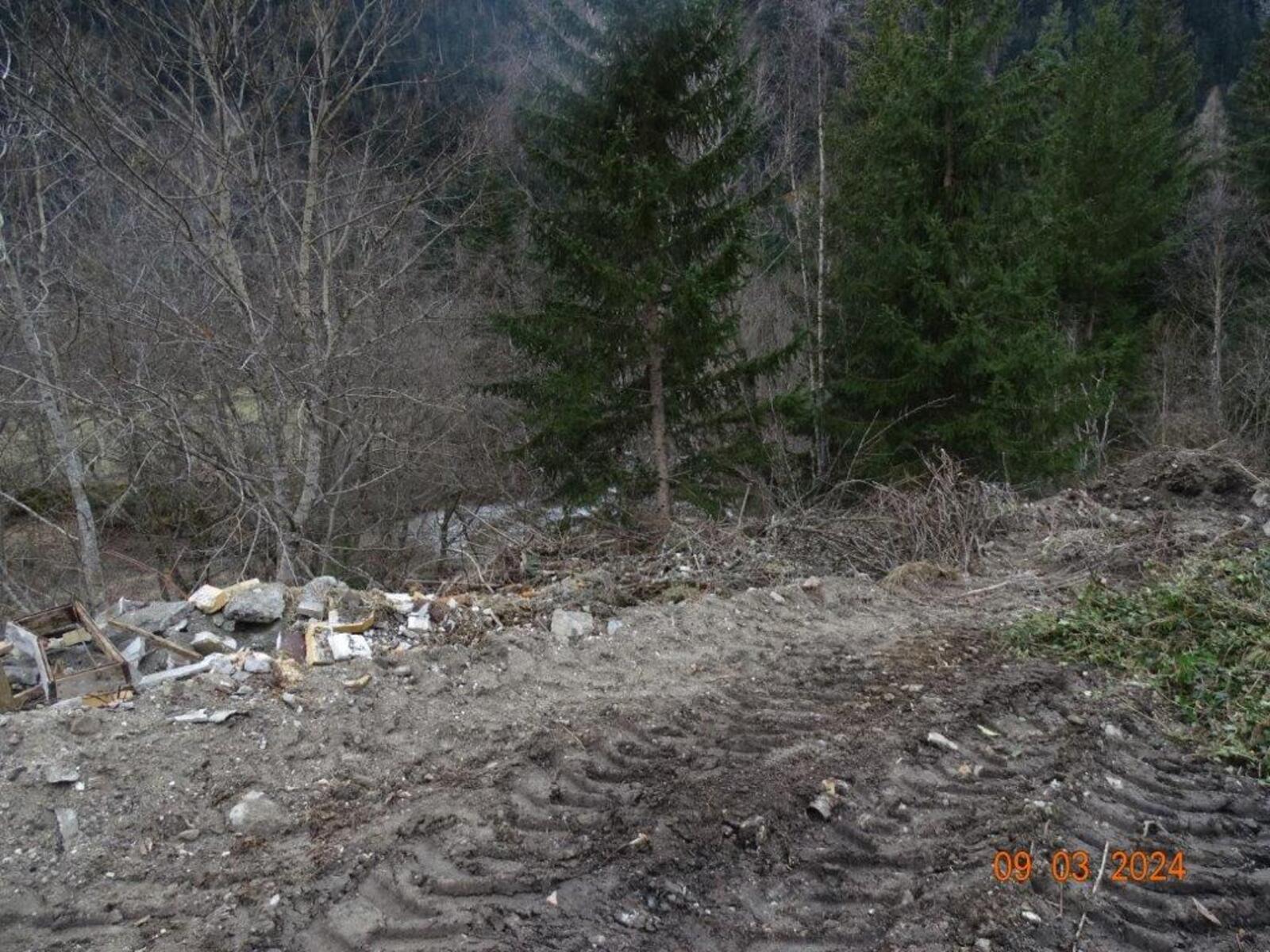 Divers types de déchets, et notamment des déchets verts associés à du plâtres, du parpaing et du fibrociment sont déposés illégalement en bordure de la D117 sur une aire communale de 2000 m2.