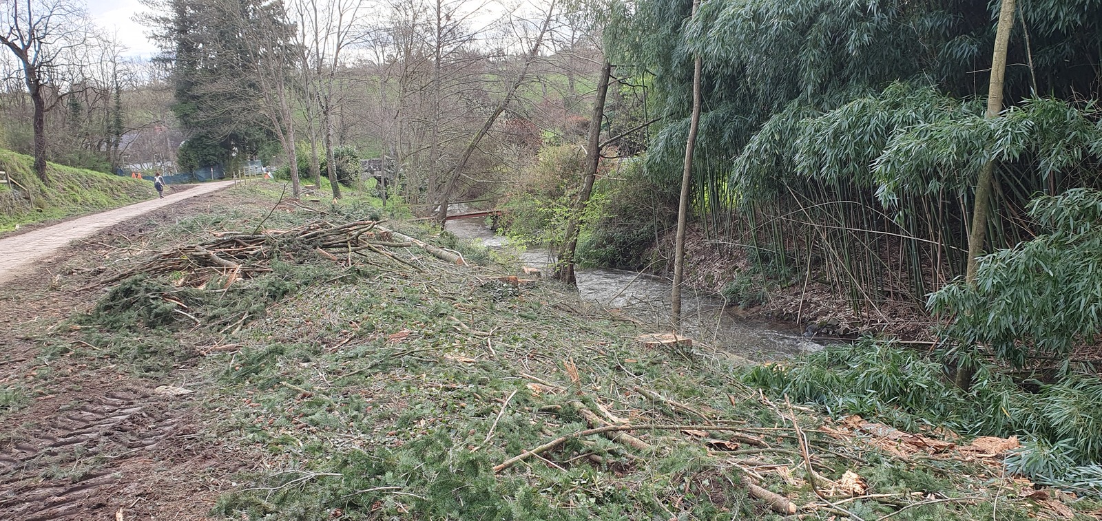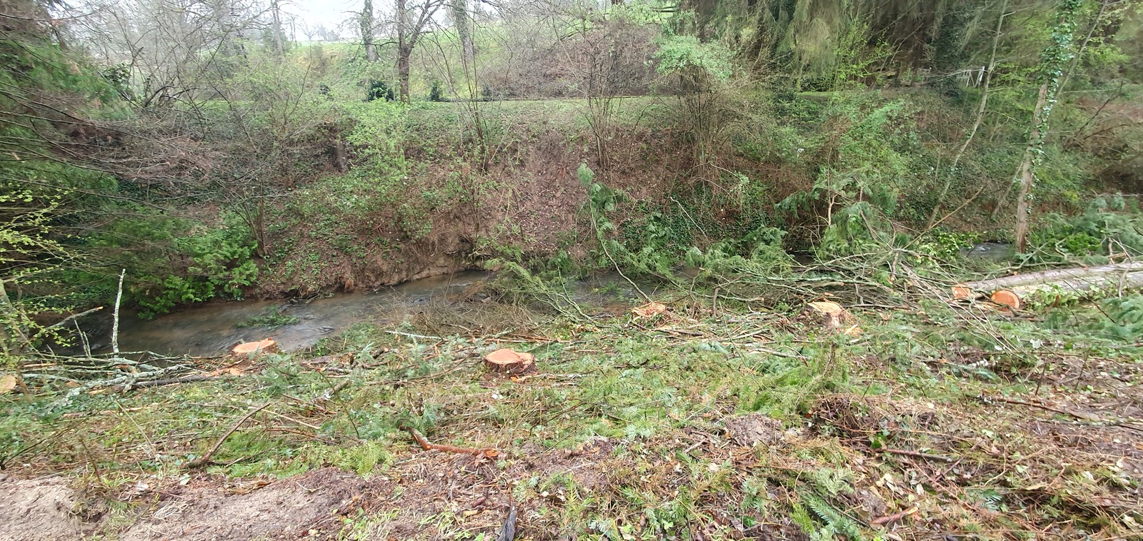 Destruction de linéaires de haies avec arbres longeant la rivière "La Queune" à proximité du lieu dit "La Pierre percée".