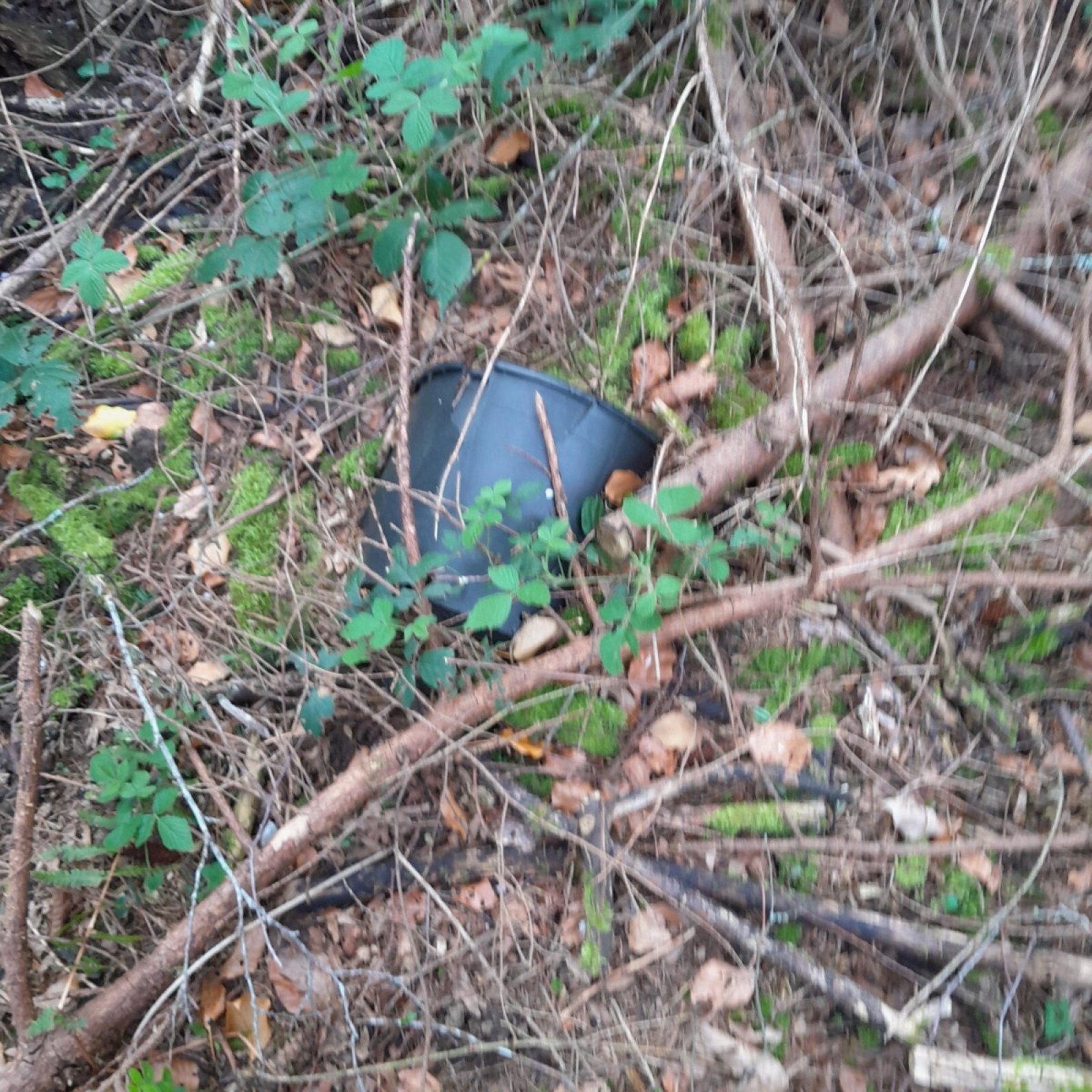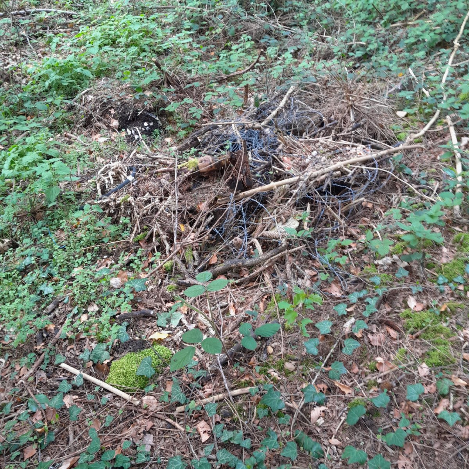 Déchets dangereux pour la faune (seau, barbelé, ...) en contrebas du sentier
