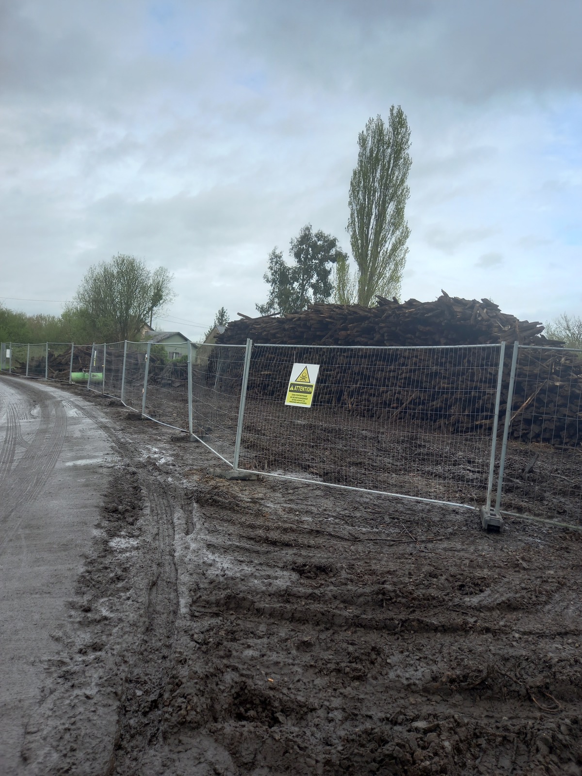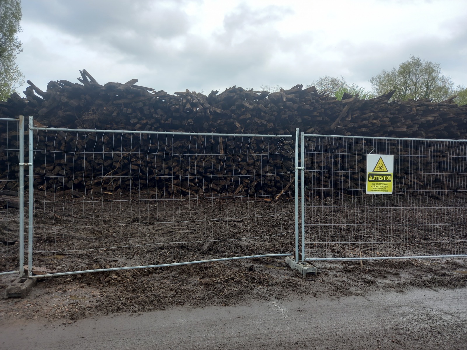 Entreposage d'anciennes traverses de chemins de fer traitées à la créosote, déchets dangereux, dans le cadre de la mise en place d'une voie verte. Ce chantier est opéré par la société NEXITY sur instructions de la société SNCF Immobilier.